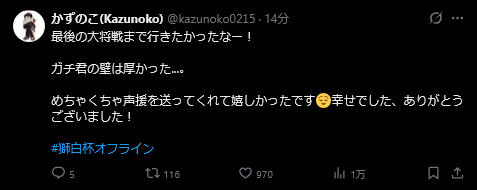 | … | 73無題Name名無し 26/04/12(日)21:10:23No.11860836そうだねx19いい大会だった |