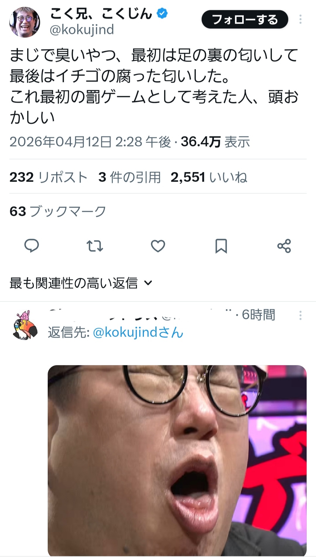| … | 94無題Name名無し 26/04/12(日)23:26:24No.11861669そうだねx6オウガさんのX良いな出演者全員の感想リポストしてくれてて一気に見れる |