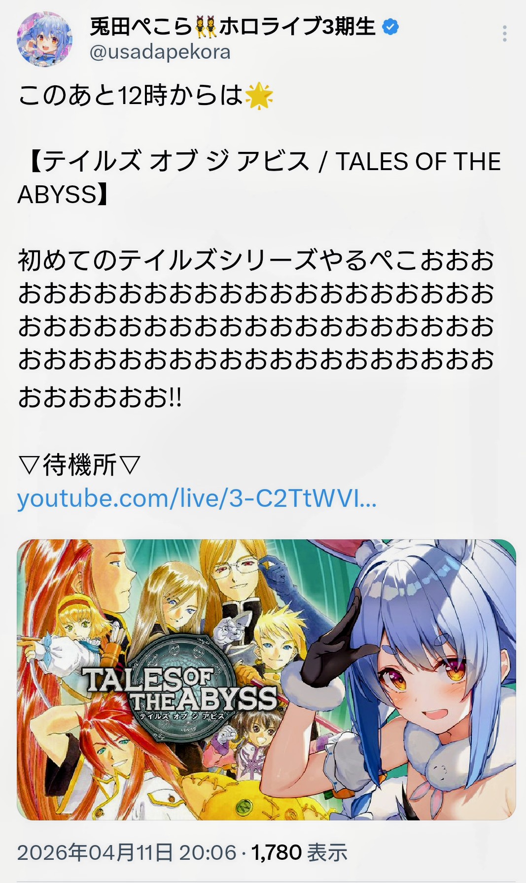 | … | 998無題Name名無し 26/04/11(土)21:15:35 IP:220.100.*(bbexcite.jp)No.11853935+>>ORIGINは肝心の本編未アニメ化なんだよな |