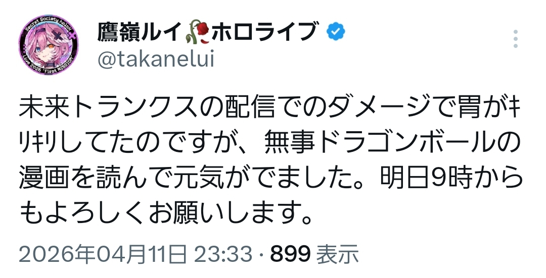 | … | 42無題Name名無し 26/04/11(土)23:36:15 IP:49.129.*(mesh.ad.jp)No.11855022そうだねx8 1775918175924.jpg-(209560 B) ルイ姉回復した模様 |