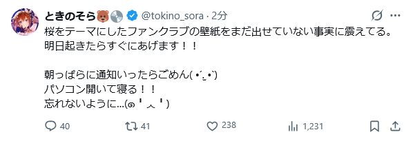 | … | 14無題Name名無し 26/04/11(土)23:30:48 IP:60.152.*(bbtec.net)No.11854993そうだねx1ミオしゃの歌声美しすぎだろ! |