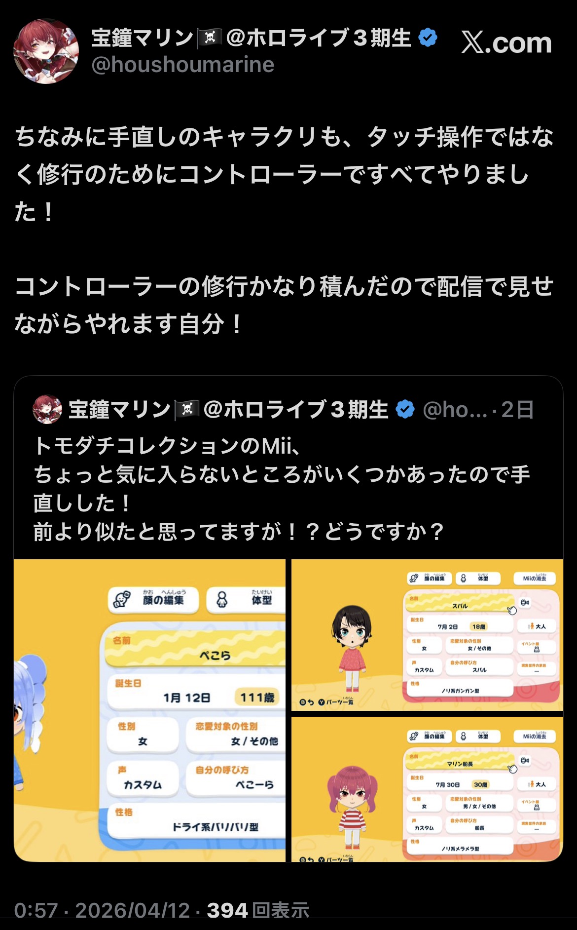 | … | 963無題Name名無し 26/04/12(日)10:45:38 IP:60.87.*(ipv4)No.11856051+アホ毛分抜いただけだからあのデカシューズ脱いだらもっと低い可能性が… |