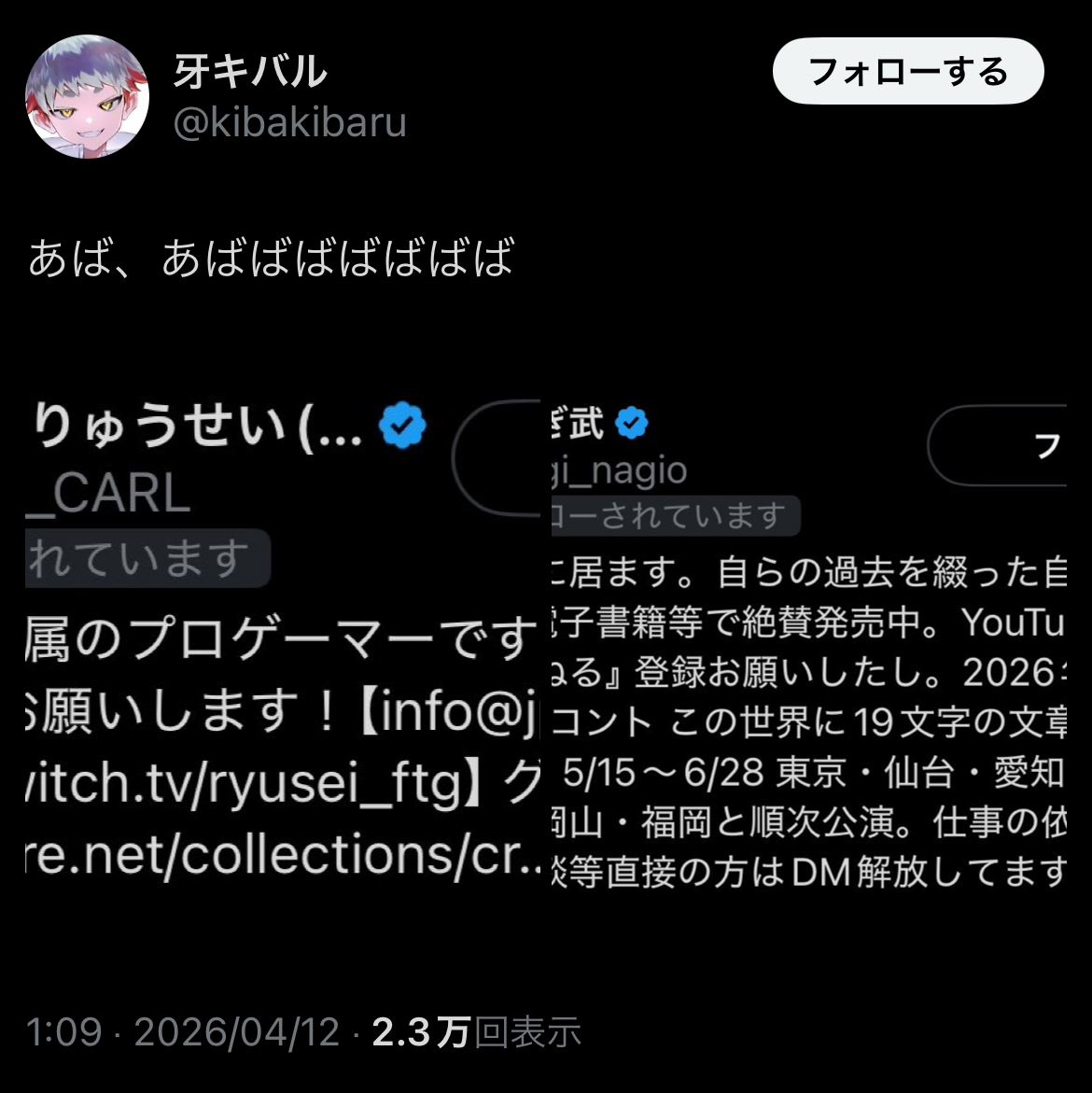 | … | 41無題Name名無し 26/04/11(土)23:36:13 IP:1.0.*(megaegg.ne.jp)No.11855021そうだねx1タイガまたメンヘラ発動したんか |