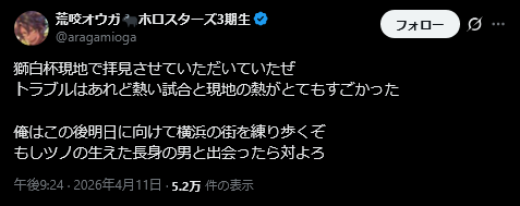 | … | 941無題Name名無し 26/04/12(日)10:41:02 IP:1.75.*(spmode.ne.jp)No.11856022そうだねx1>ファンが大量に送ってきたら触れなければいけない |