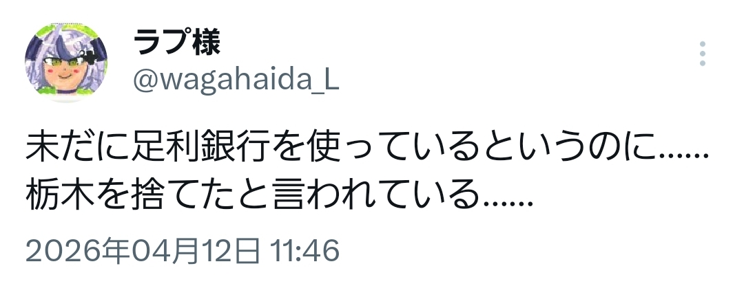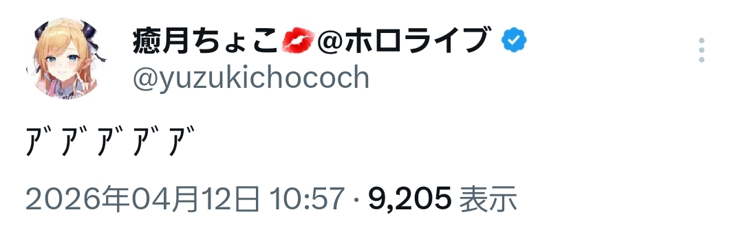 | … | 9無題Name名無し 26/04/12(日)11:11:09 IP:180.197.*(commufa.jp)No.11856108+わため相手だったら配信で30回ぐらいはこすられてそうなエピソード |