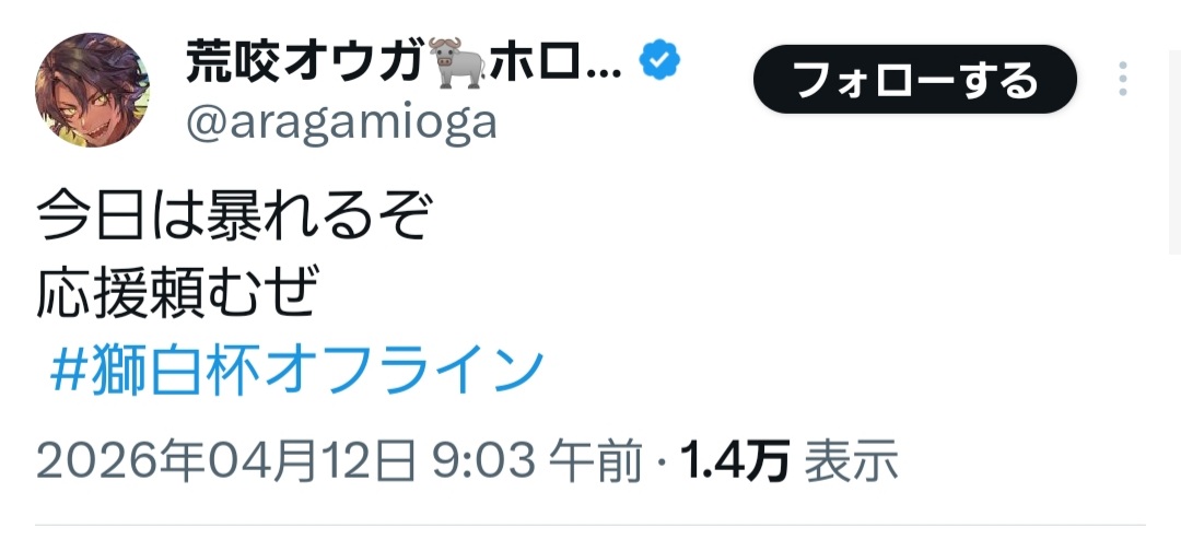 | … | 70無題Name名無し 26/04/12(日)11:30:49 IP:60.98.*(bbtec.net)No.11856179そうだねx1獅白杯2日目の枠が開いたのだ… |