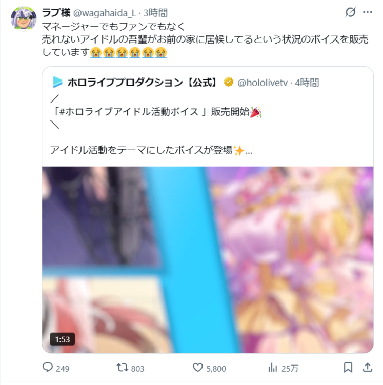 | … | 36無題Name名無し 26/04/16(木)08:03:10No.11875794+あおぎりの音声は3本出してトータル1億くらい稼いだらしいよ |