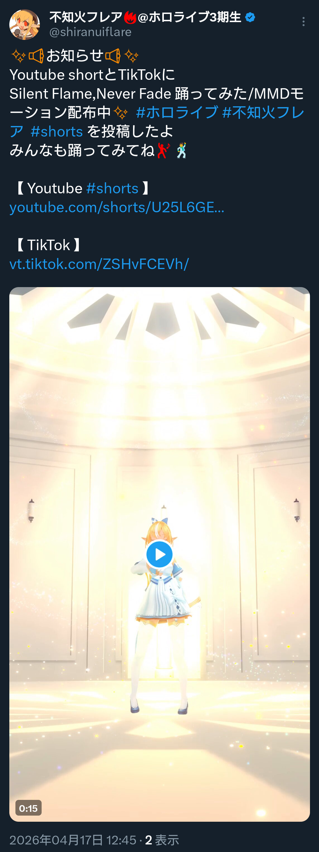 | … | 981無題Name名無し 26/04/17(金)20:23:21 IP:36.13.*(dion.ne.jp)No.11880987+さすが無限にショートで踊ってるだけあるぜこより! |