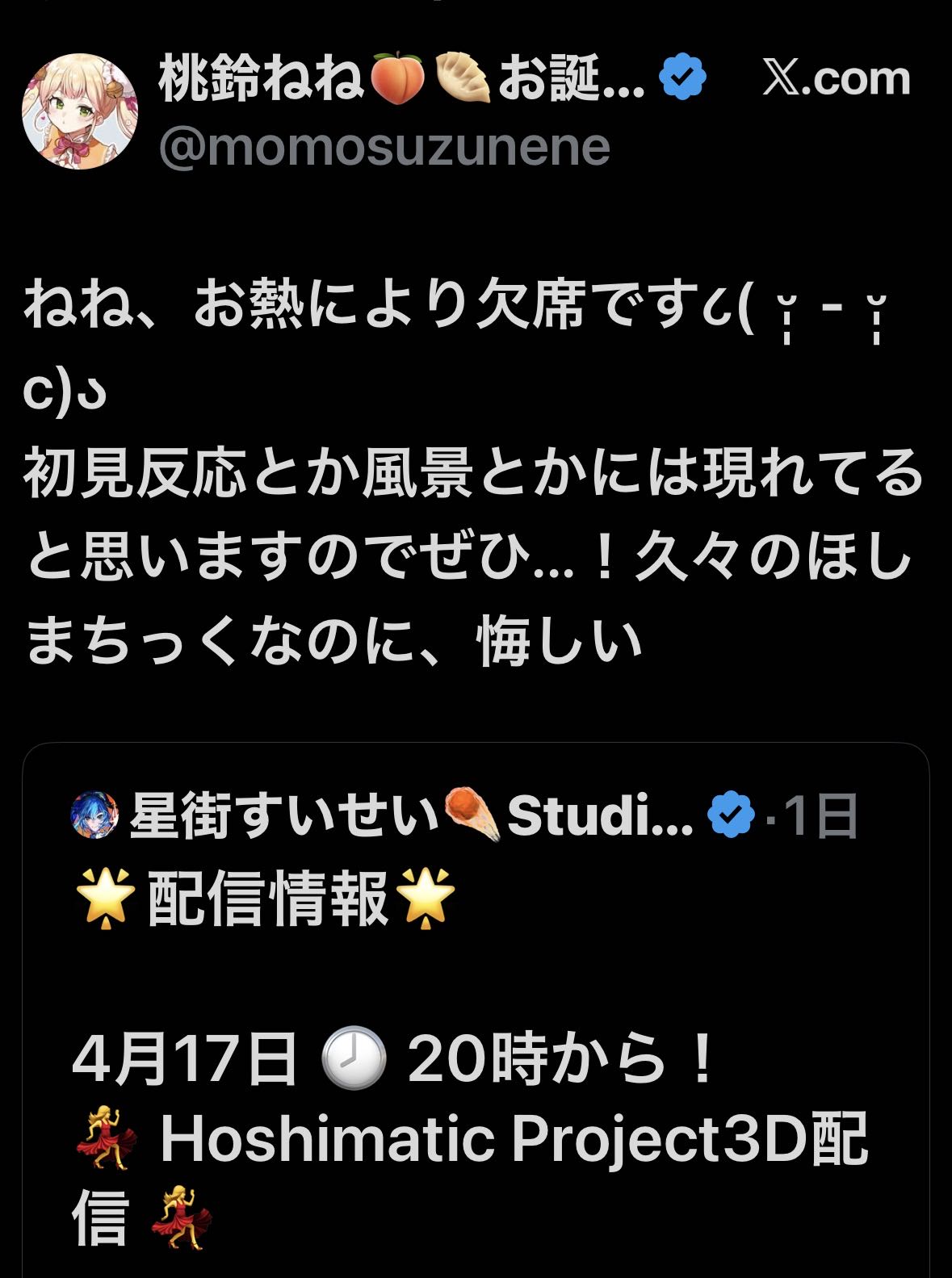 | … | 985無題Name名無し 26/04/17(金)20:23:31 IP:153.134.*(ocn.ne.jp)No.11880991+こよりの曲って振り付け大変なの多くね? |