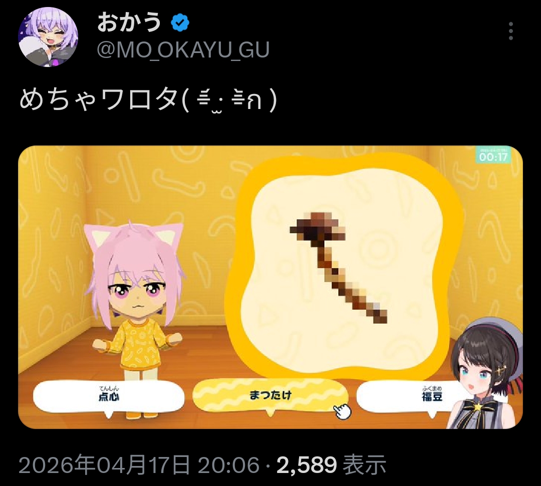 | … | 905無題Name名無し 26/04/17(金)20:19:16 IP:60.56.*(eonet.ne.jp)No.11880907+ミニゲーム…なんだか嫌な予感がするのぉ… |