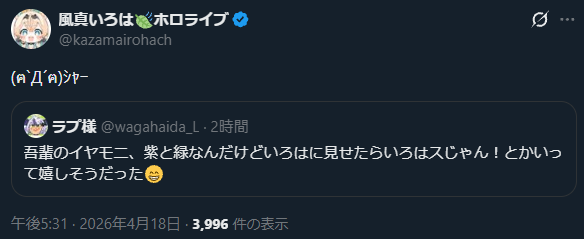 | … | 92無題Name名無し 26/04/18(土)14:14:29 IP:119.169.*(home.ne.jp)No.11885316+リズの生誕ライブは収録とのこと |