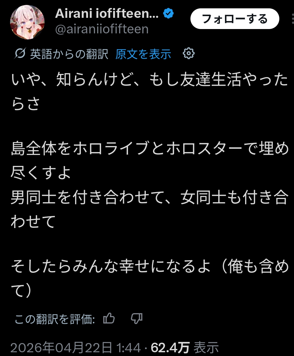 | … | 962無題Name名無し 26/04/23(木)22:30:53 IP:133.200.*(mesh.ad.jp)No.11909734+あじまり島 |