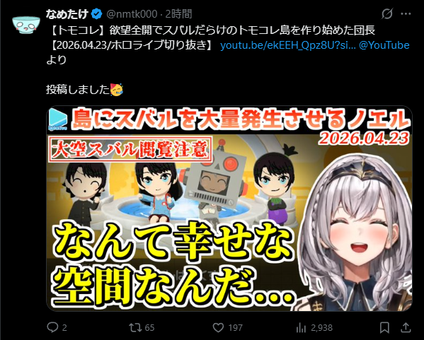 | … | 71無題Name名無し 26/04/24(金)01:29:43 IP:133.206.*(mesh.ad.jp)No.11910873+もふこよやばくない? |