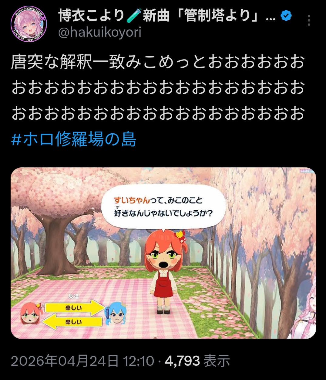 | … | 996無題Name名無し 26/04/24(金)20:09:12 IP:133.201.*(mesh.ad.jp)No.11911998そうだねx1そらちゃんとこよりが「イケ❤イケ❤」って⋯ |