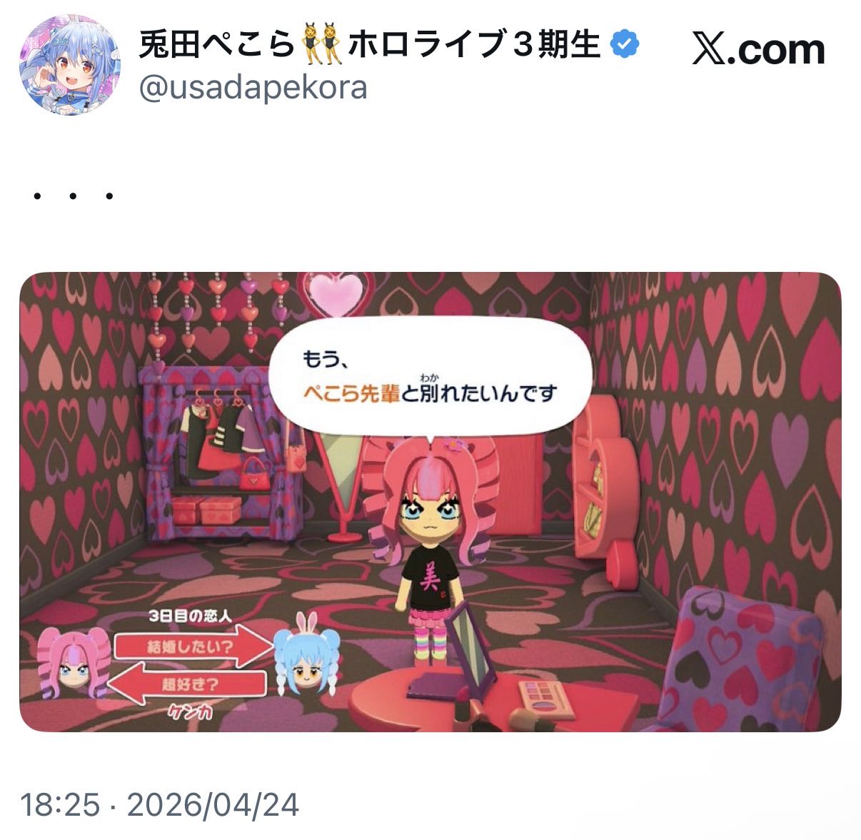 | … | 994無題Name名無し 26/04/24(金)20:08:07 IP:122.255.*(c3-net.ne.jp)No.11911996そうだねx1 1777028887699.png-(196699 B) >ぺこらは悪くねえ! |