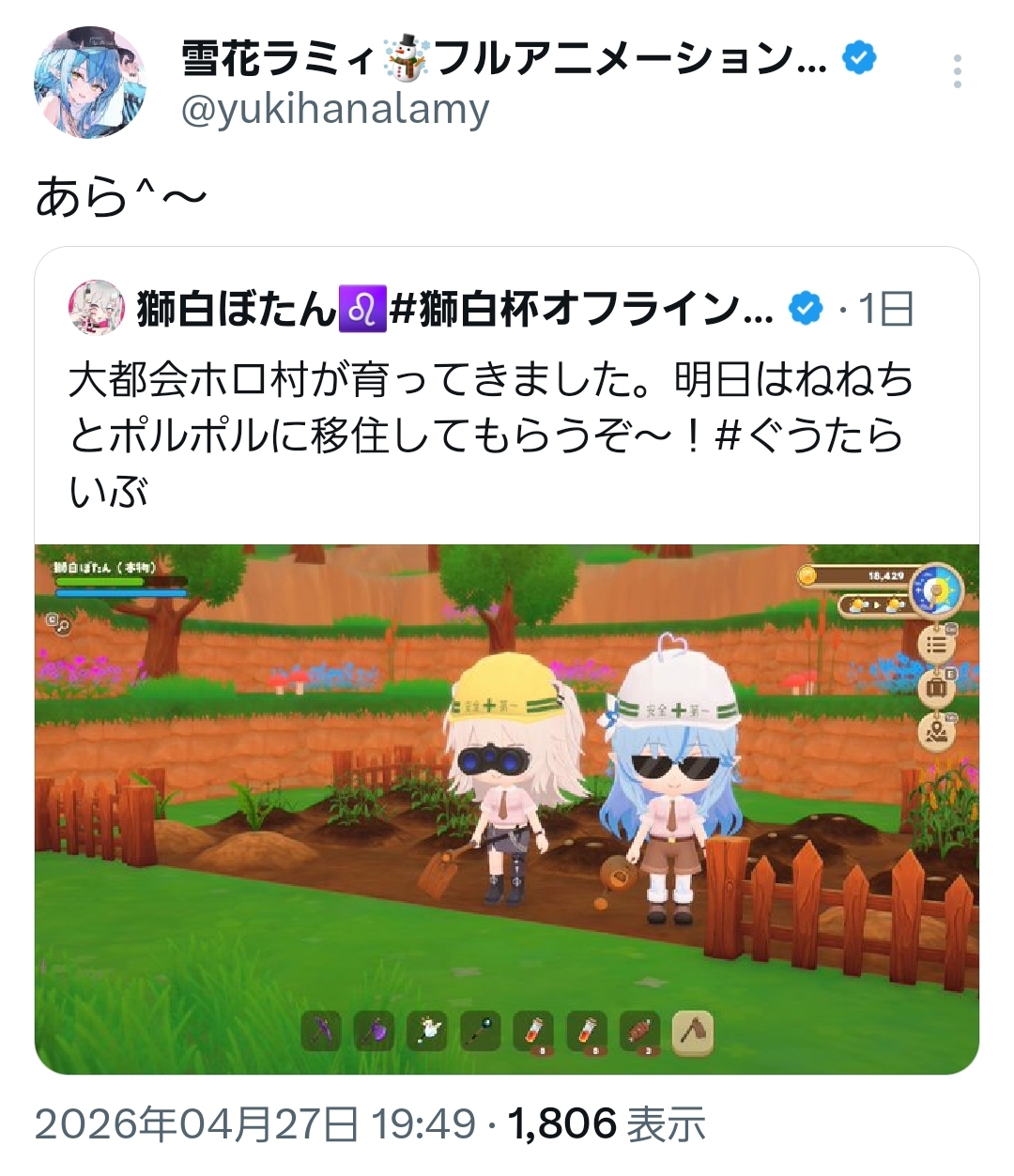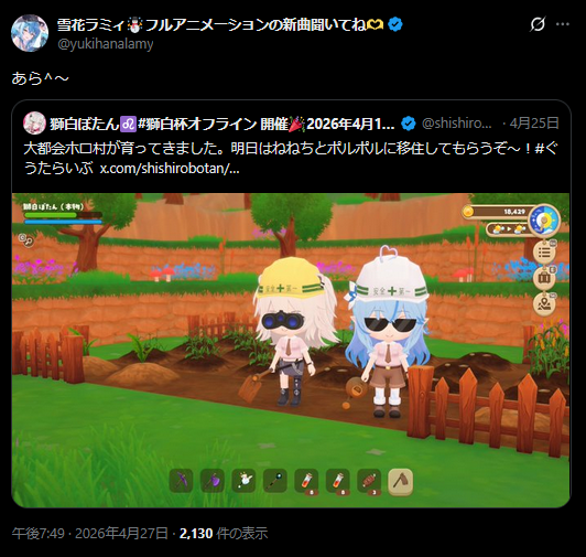 | … | 48無題Name名無し 26/04/27(月)19:20:13 IP:49.109.*(spmode.ne.jp)No.11927944+(これシンプルに白上の愉悦枠なのでは?) |