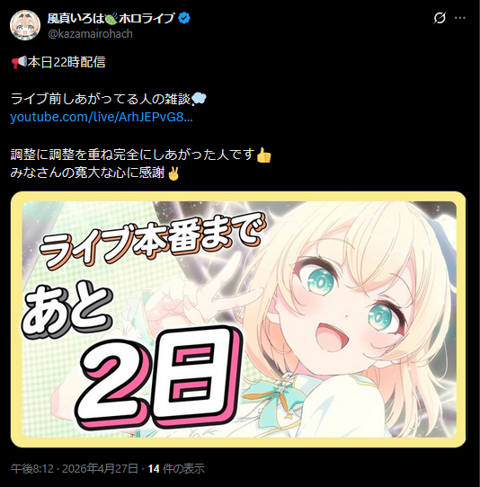 | … | 36無題Name名無し 26/04/27(月)19:18:11 IP:125.196.*(mesh.ad.jp)No.11927932+青髪!まとめ髪!すいせいさんですね!! |