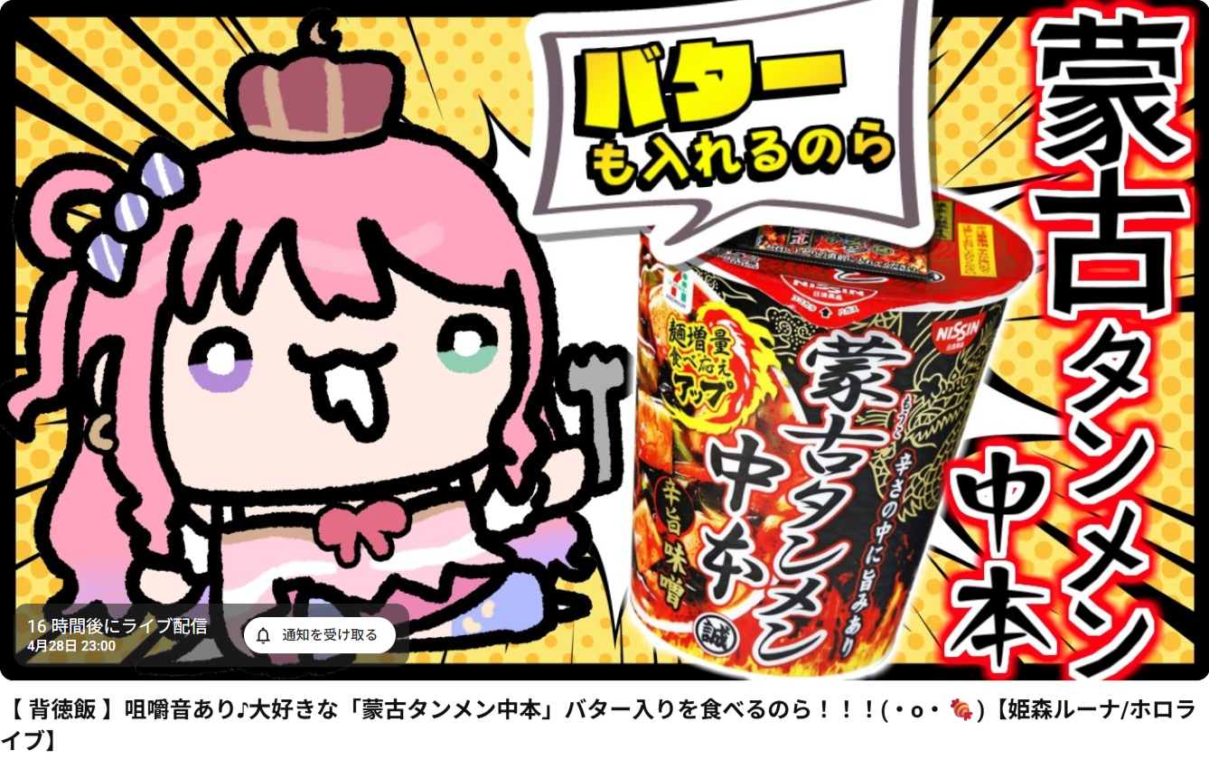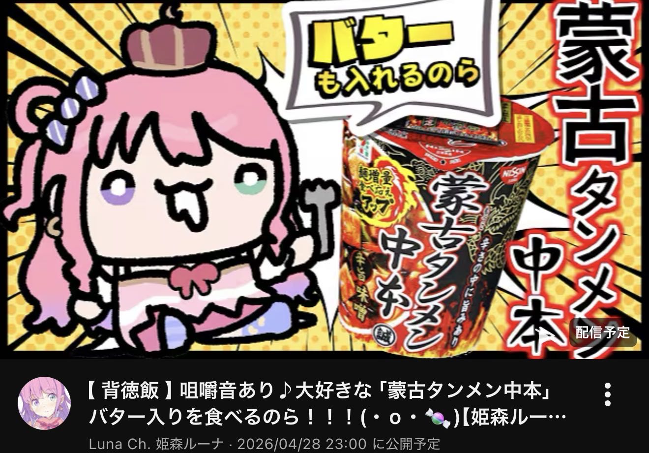 | … | 36無題Name名無し 26/04/28(火)01:31:53 IP:27.138.*(home.ne.jp)No.11931063+えっ深夜にバター入り蒙古タンメンを⁉ |