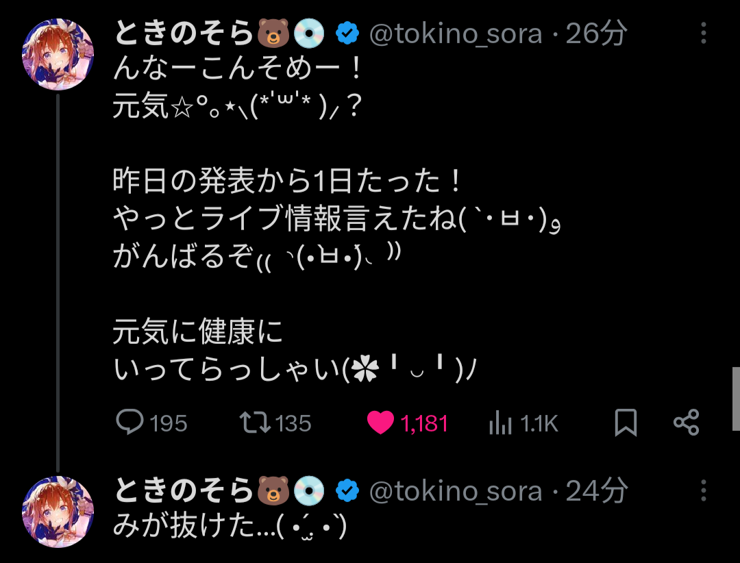 | … | 86無題Name名無し 26/04/28(火)07:28:15 IP:60.124.*(bbtec.net)No.11931146+あずきちはVTuberとしてはちょっと特殊な立ち位置じゃねえ…? |