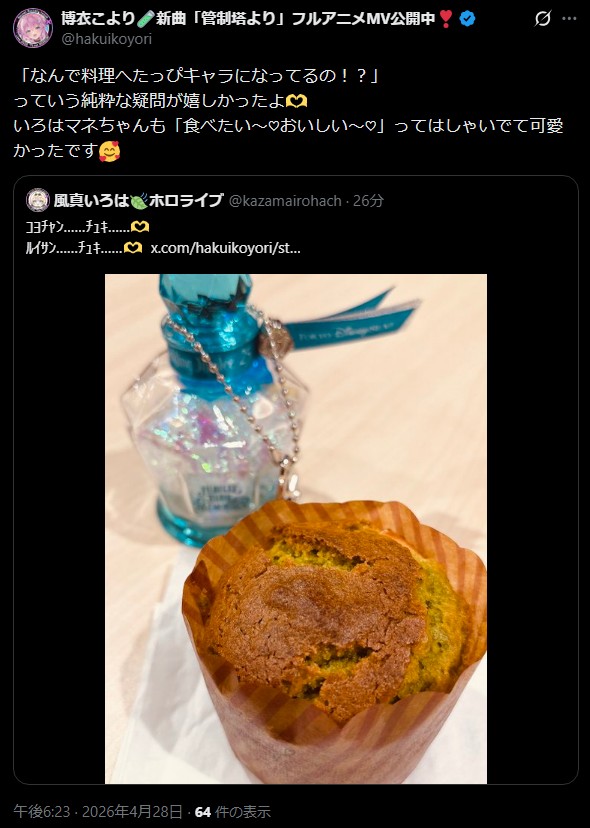 | … | 75無題Name名無し 26/04/28(火)07:20:01 IP:182.170.*(so-net.ne.jp)No.11931134+こよりは果実酒だけじゃなくサングリアみたいな果実の酒漬けも好きだったっけ |