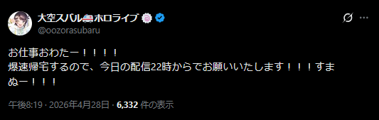 | … | 981無題Name名無し 26/04/28(火)21:02:44 IP:36.52.*(pikara.ne.jp)No.11932224そうだねx2みこおとスバサが癒やし枠に感じられてきた |
