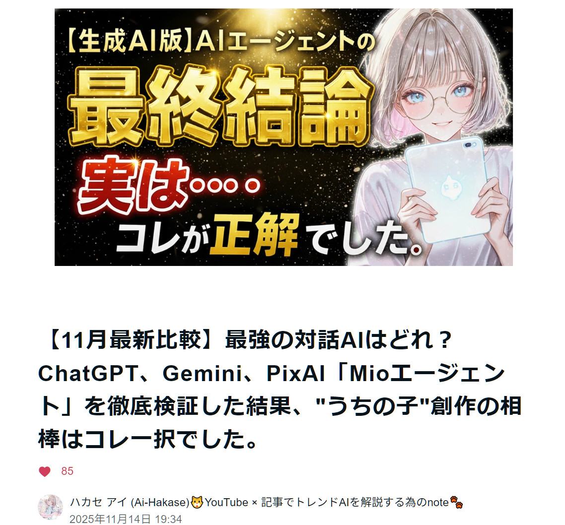 | … | 113無題Name名無し 25/11/22(土)02:13:59No.147482そうだねx2 1763745239550.jpg-(335967 B) PixAI、Mioの使い方のnote |