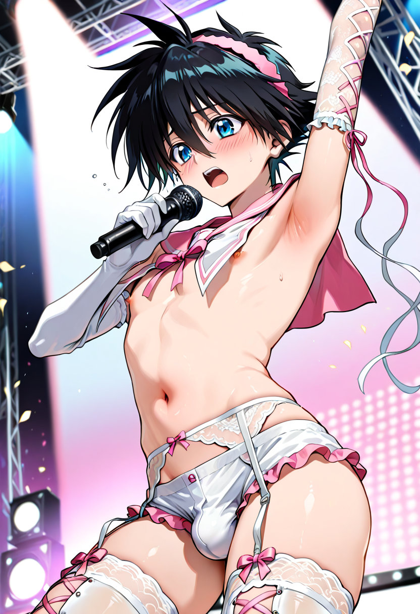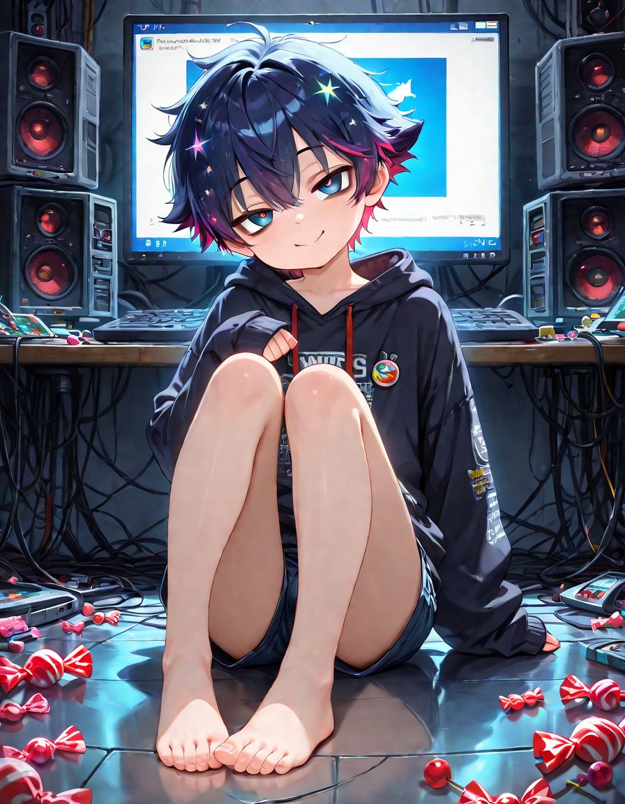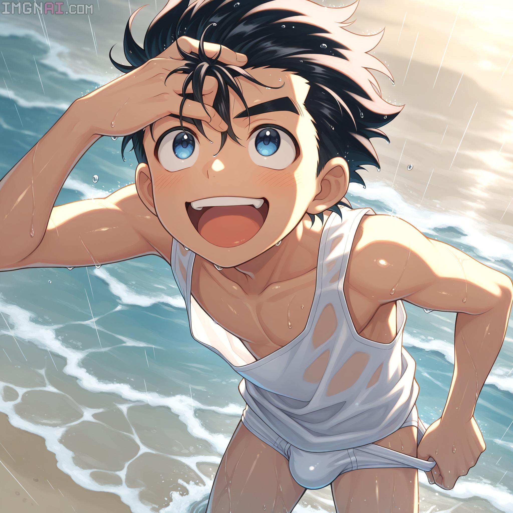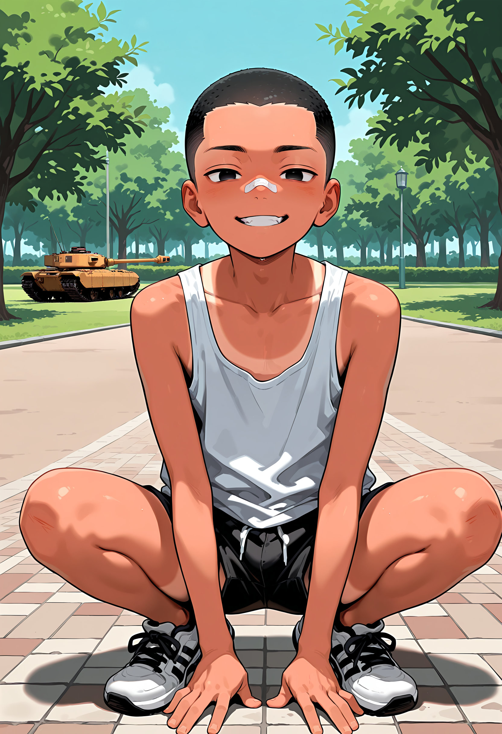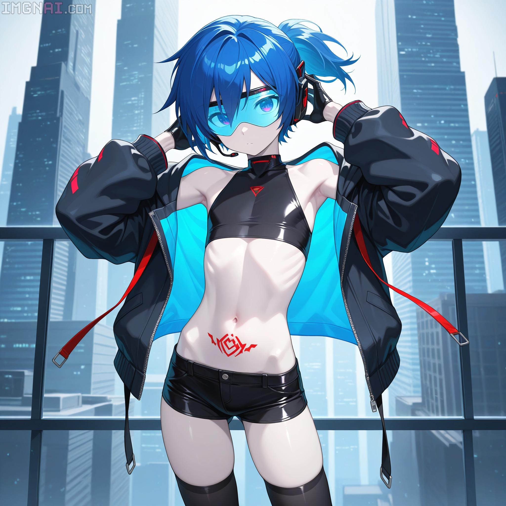 | … | 10無題Name名無し 25/12/19(金)00:08:34No.150311そうだねx1 1766070514841.jpg-(430791 B) (1boy,solo,shota:0.9,12 years old,short hair,sharp eyebrow,two-tone hair,blue_hair, black_hair, shiny hair, spiked hair,black eyes, dark skin,flat chest,child body:0.9,shiny glossy body,), |