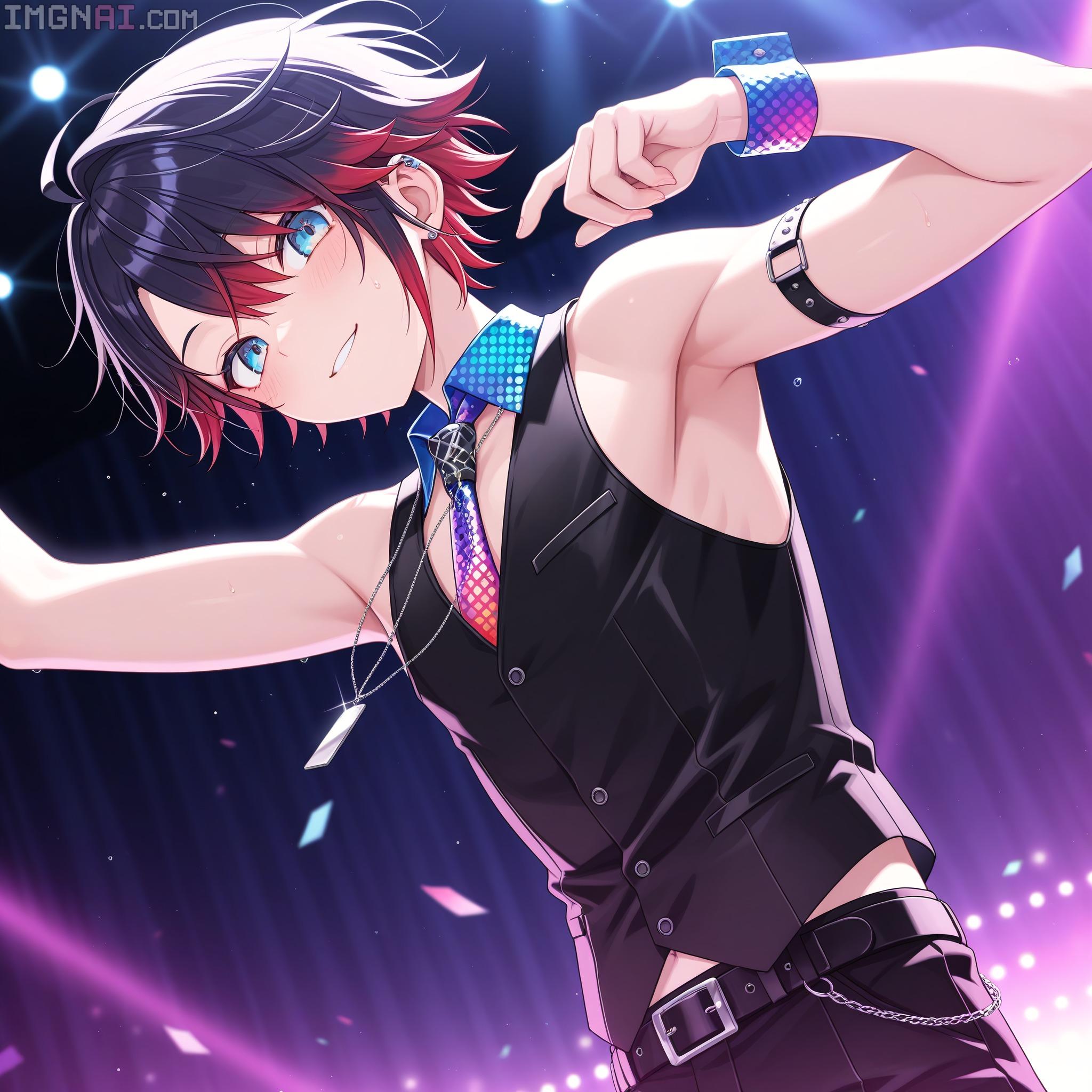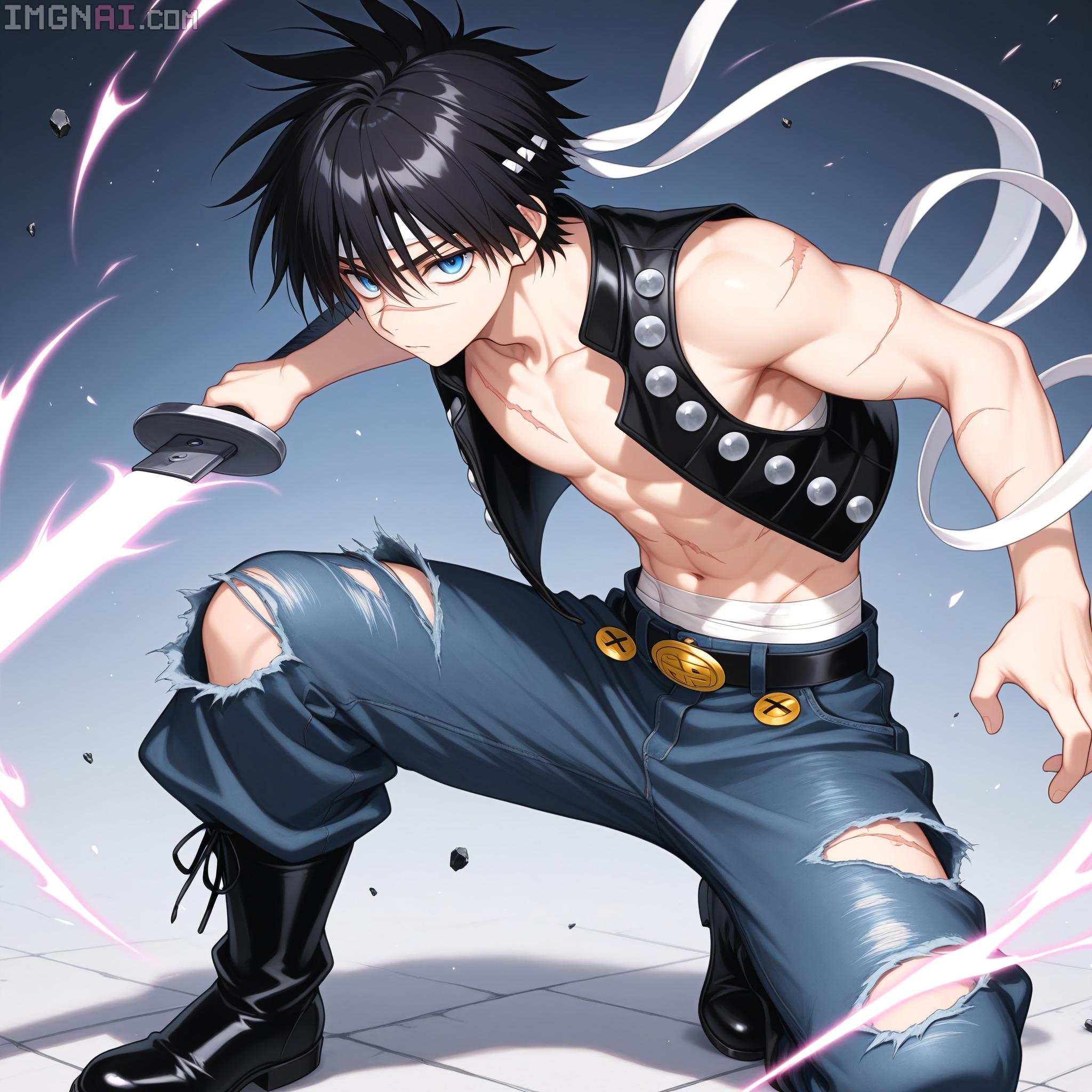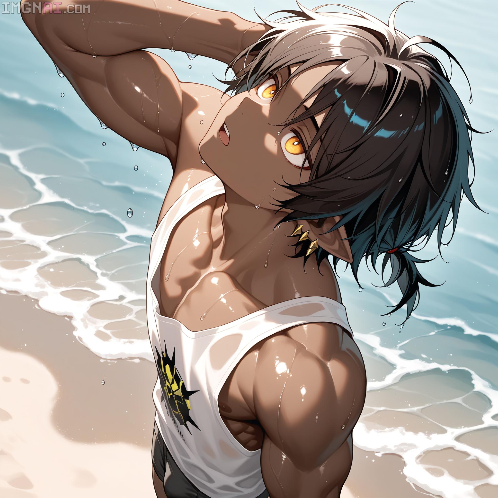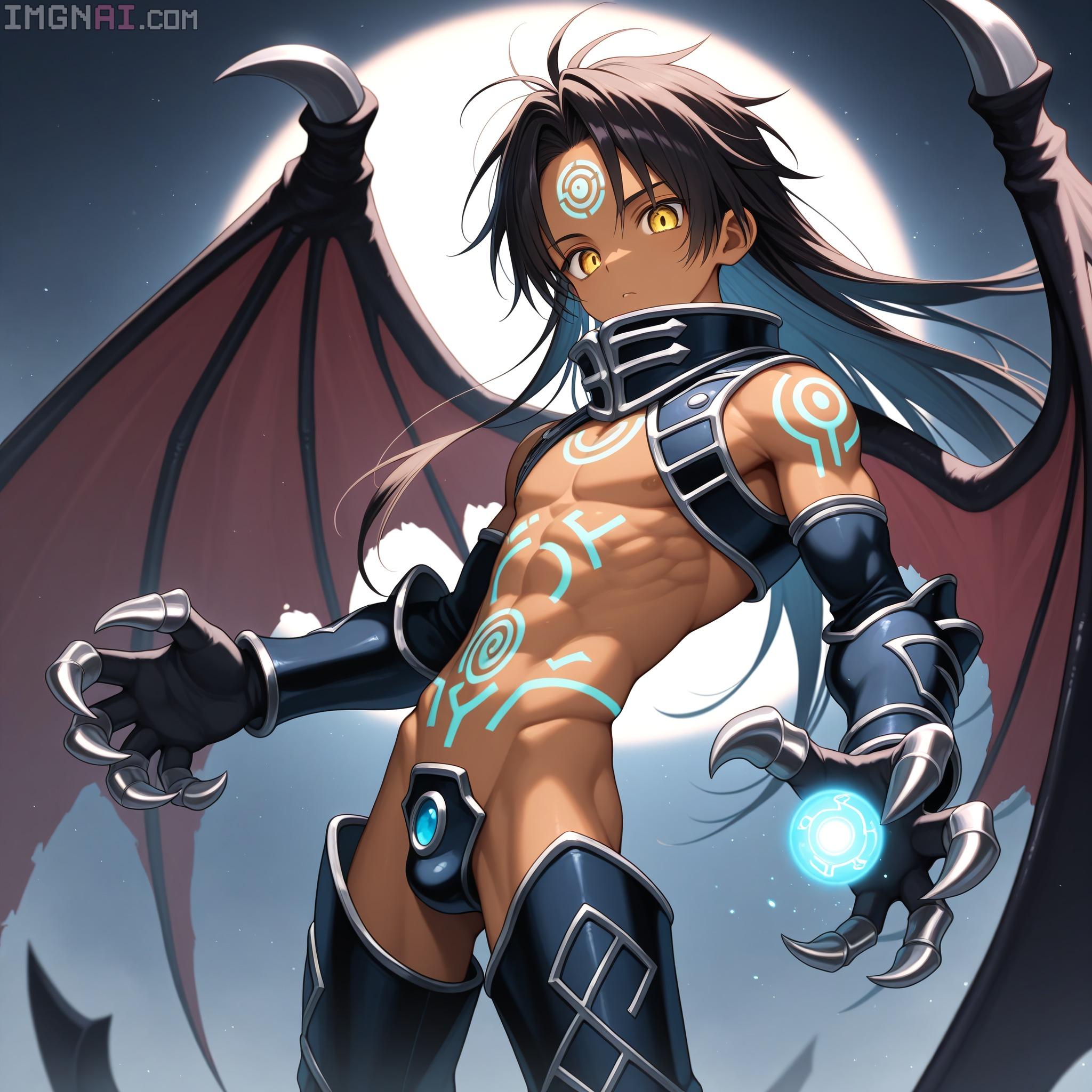 | … | 10無題Name名無し 25/12/19(金)00:08:34No.150311そうだねx1 1766070514841.jpg-(430791 B) (1boy,solo,shota:0.9,12 years old,short hair,sharp eyebrow,two-tone hair,blue_hair, black_hair, shiny hair, spiked hair,black eyes, dark skin,flat chest,child body:0.9,shiny glossy body,), |