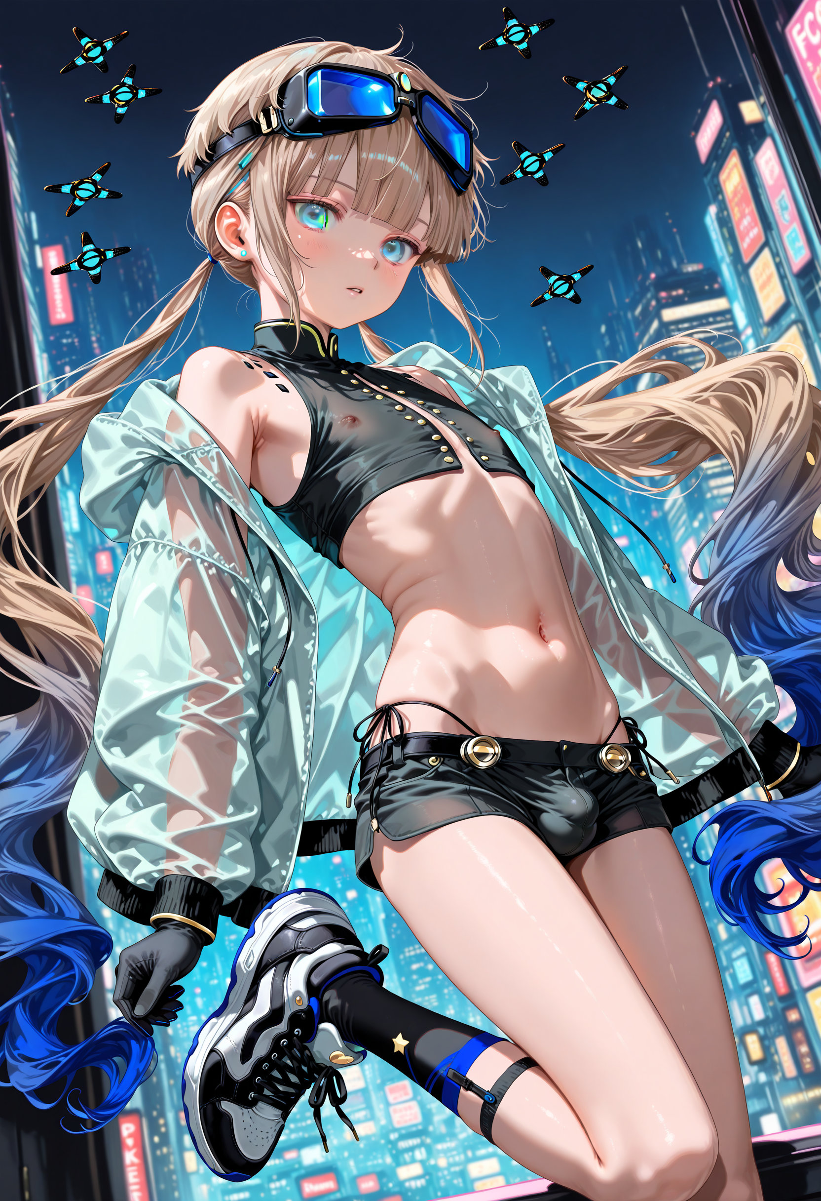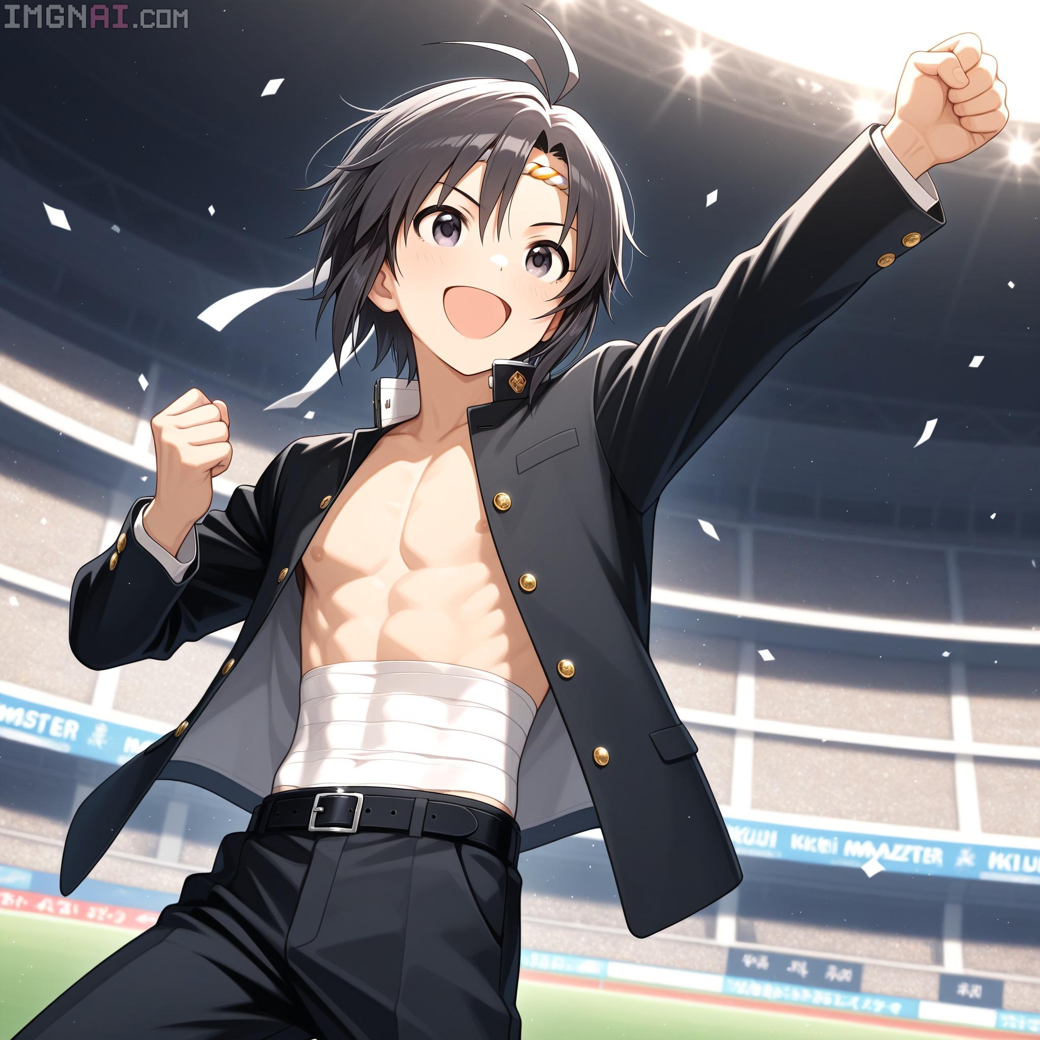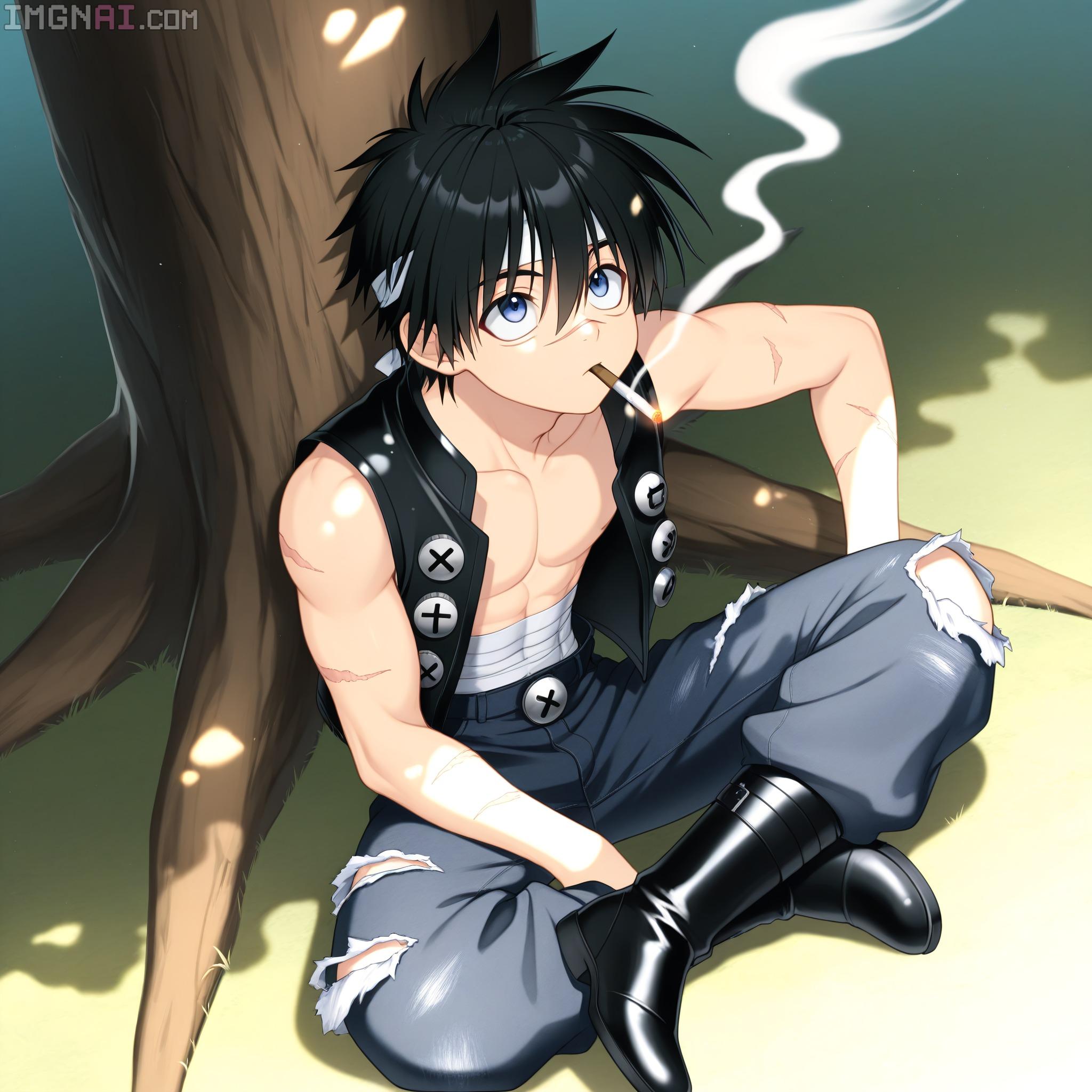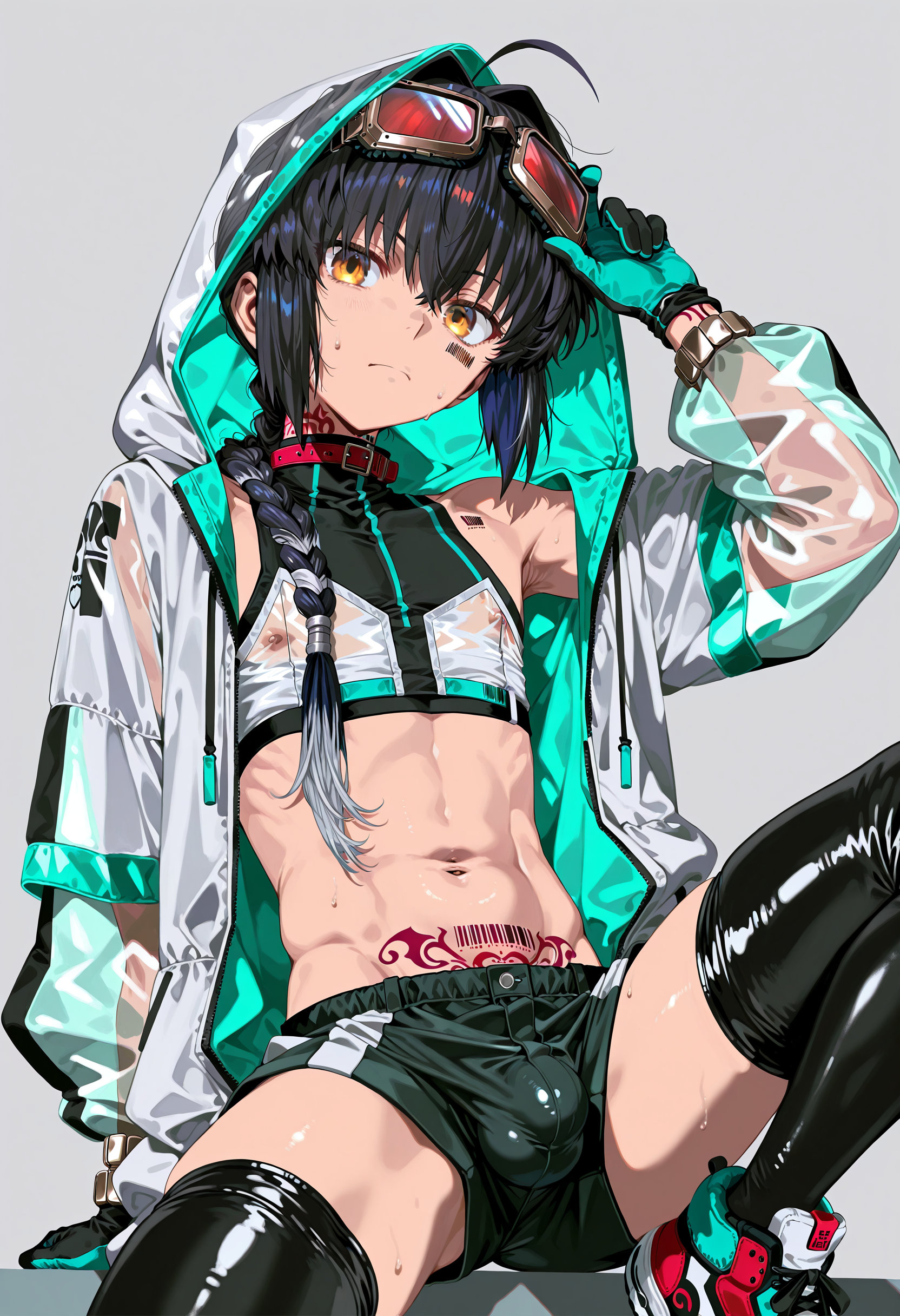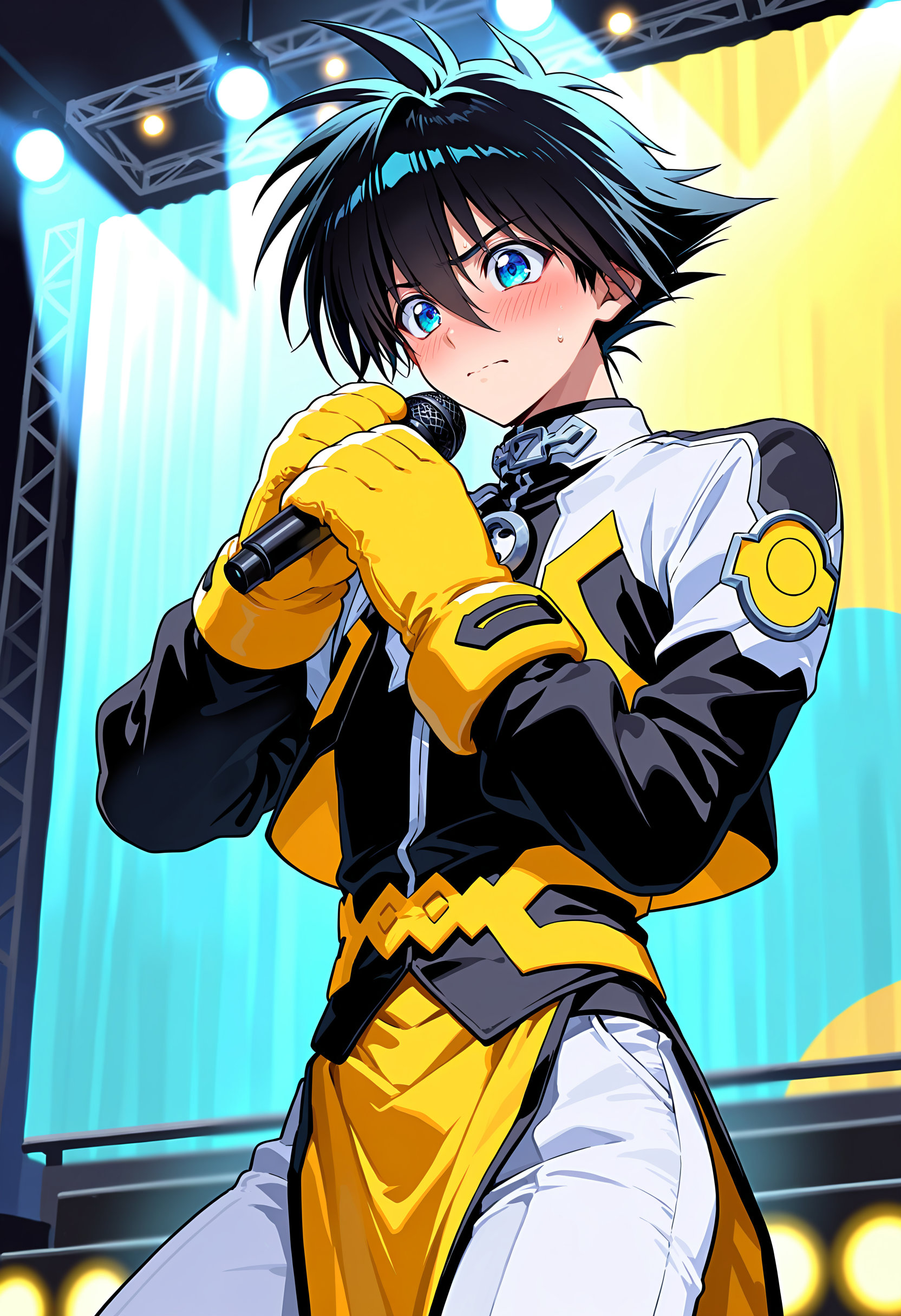 | … | 10無題Name名無し 25/12/19(金)00:08:34No.150311そうだねx1 1766070514841.jpg-(430791 B) (1boy,solo,shota:0.9,12 years old,short hair,sharp eyebrow,two-tone hair,blue_hair, black_hair, shiny hair, spiked hair,black eyes, dark skin,flat chest,child body:0.9,shiny glossy body,), |