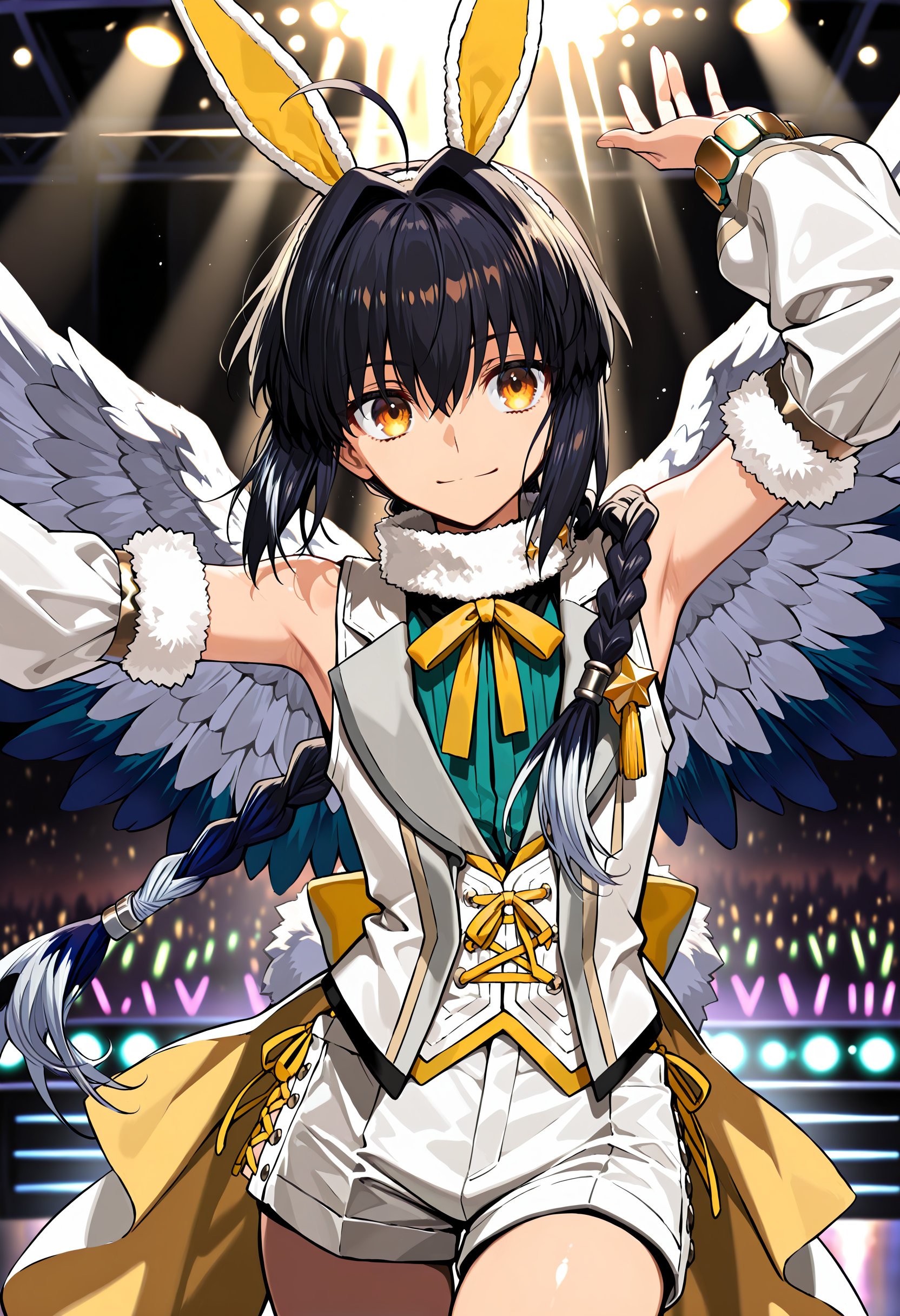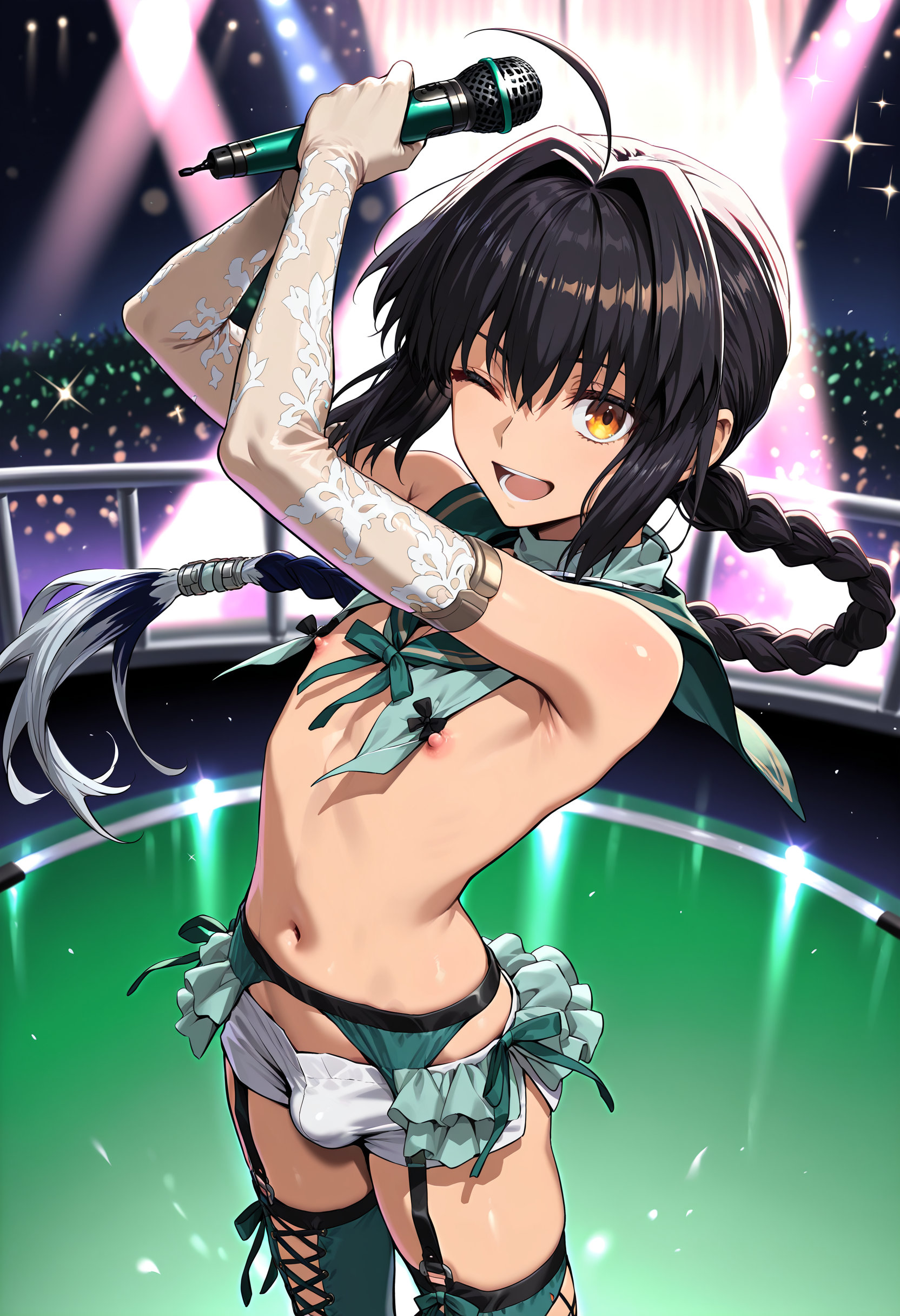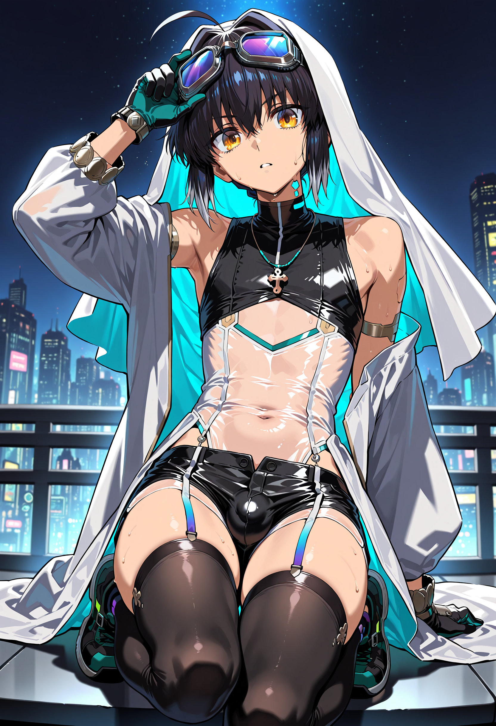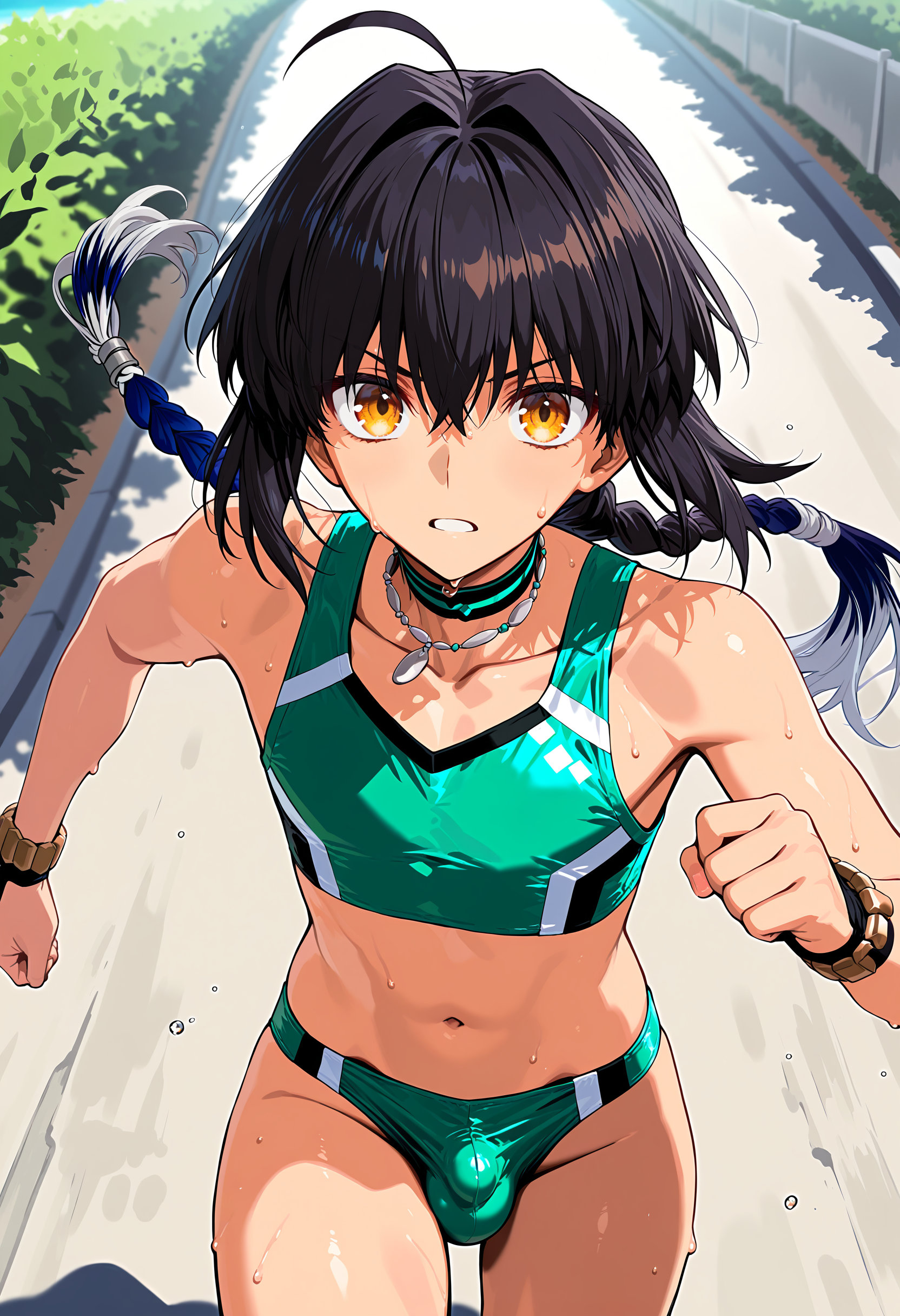 | … | 10無題Name名無し 25/12/19(金)00:08:34No.150311そうだねx1 1766070514841.jpg-(430791 B) (1boy,solo,shota:0.9,12 years old,short hair,sharp eyebrow,two-tone hair,blue_hair, black_hair, shiny hair, spiked hair,black eyes, dark skin,flat chest,child body:0.9,shiny glossy body,), |
