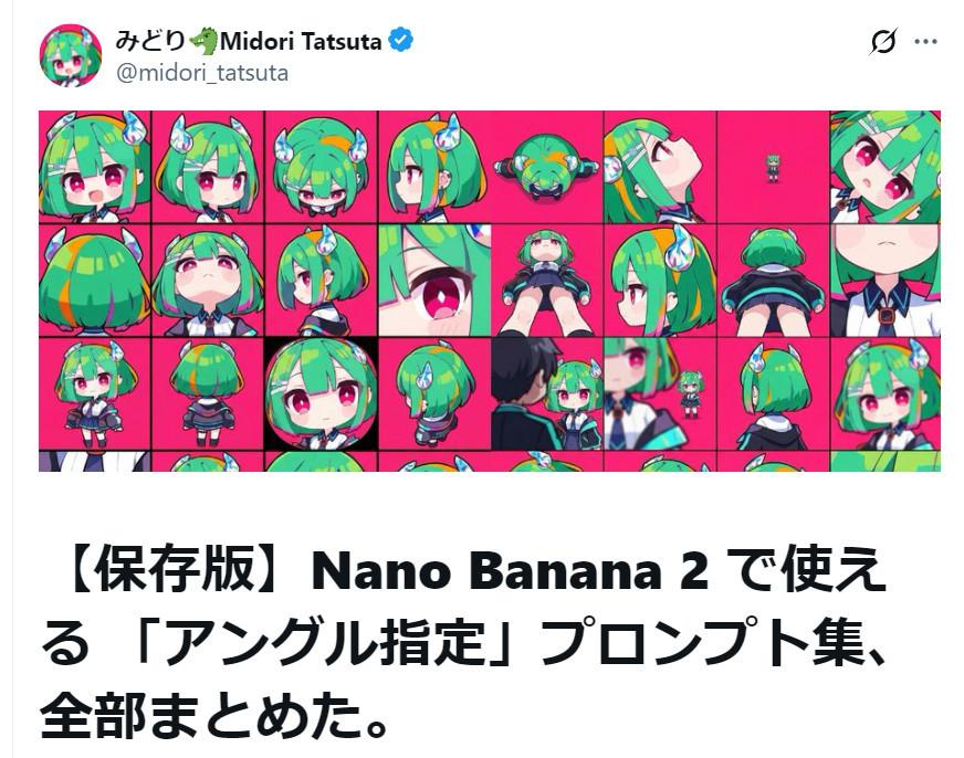 >【保存版】Nano Banana 2 で使える 「アングル指定」プロンプト集、全部まとめた。