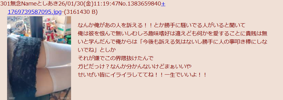 | D | f322198.jpg | 現実見れない負け犬ラレ男ケンサンキューな | 100 | 26/04/23(木)02:37 |