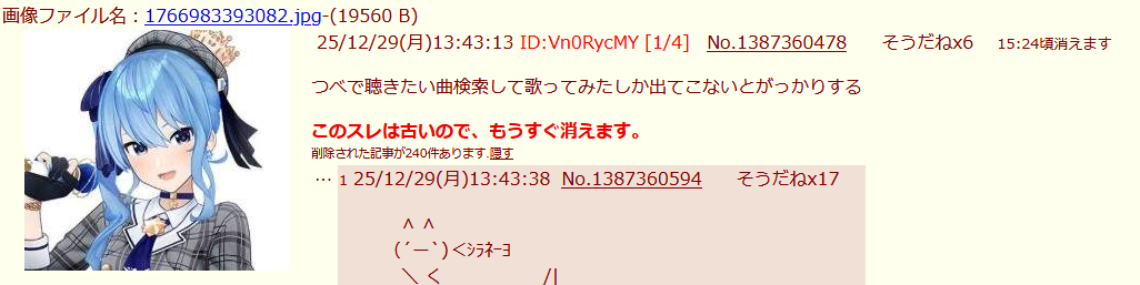 | deleted | deleted | 299 | 25/12/29(月)16:40 | |