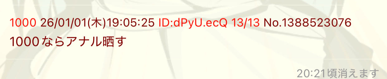| D | fu6111453.jpeg | C9E256F4-EF58-499A-A28B-93553880870E | 144 | 26/01/01(木)19:08 |