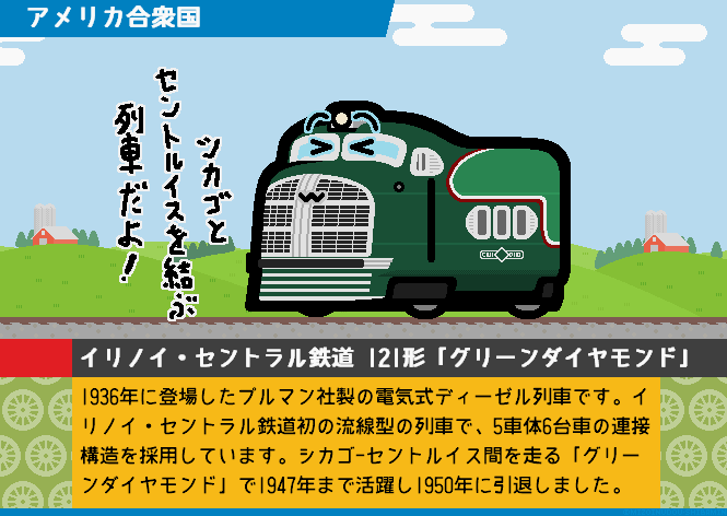 Dfu5725682.pngアメリカ イリノイ・セントラル鉄道 121形「グリーンダイヤモンド」3925/10/12(日)23:05