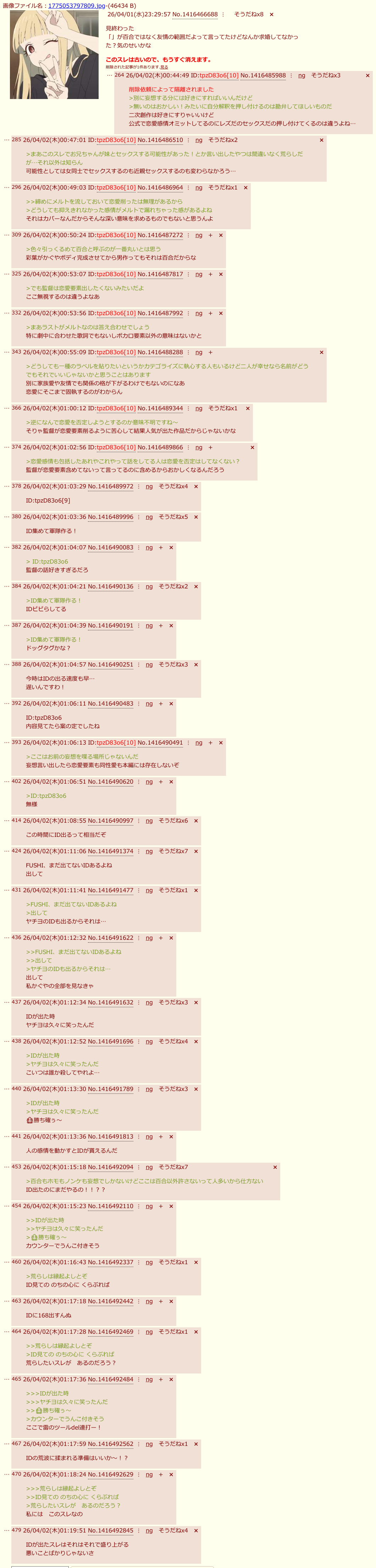 | deleted | deleted | 435 | 26/04/04(土)10:35 | |