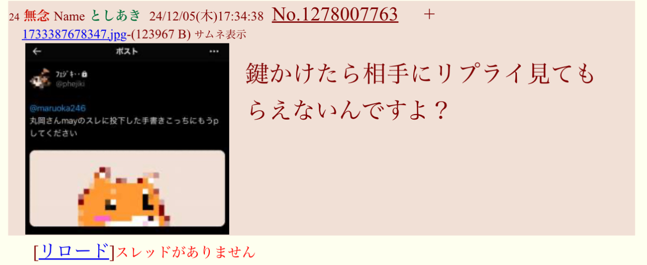 | D | fu6189287.jpeg | 23342eb7c9c66b8777ad4edaacfd4ffb | 46 | 26/01/20(火)03:08 |