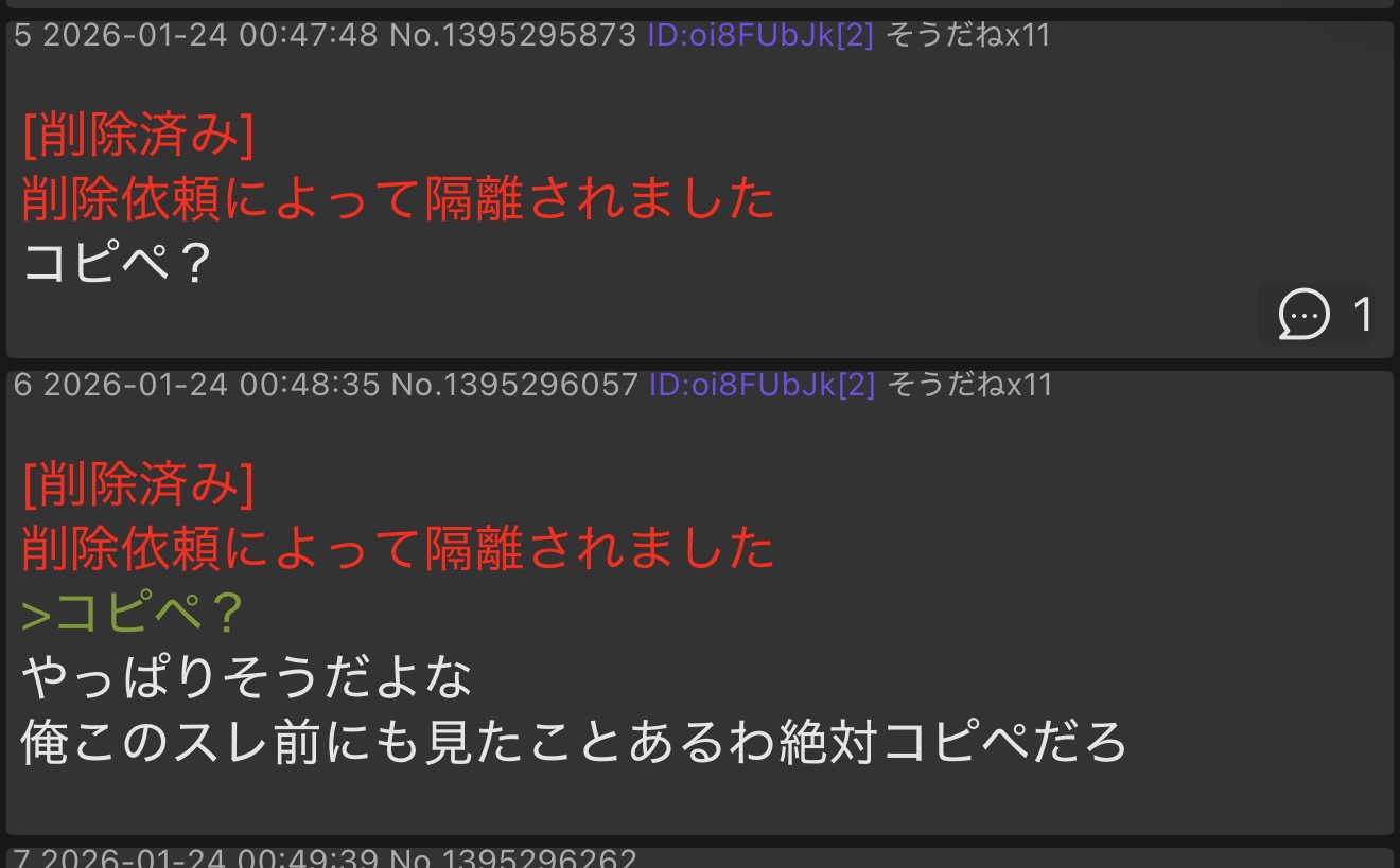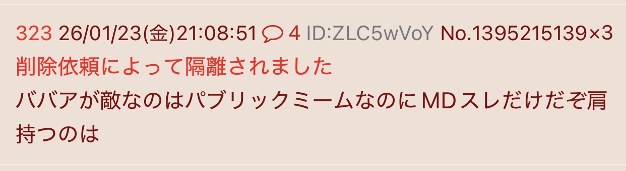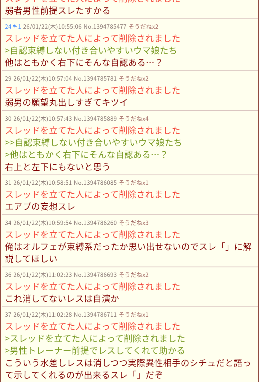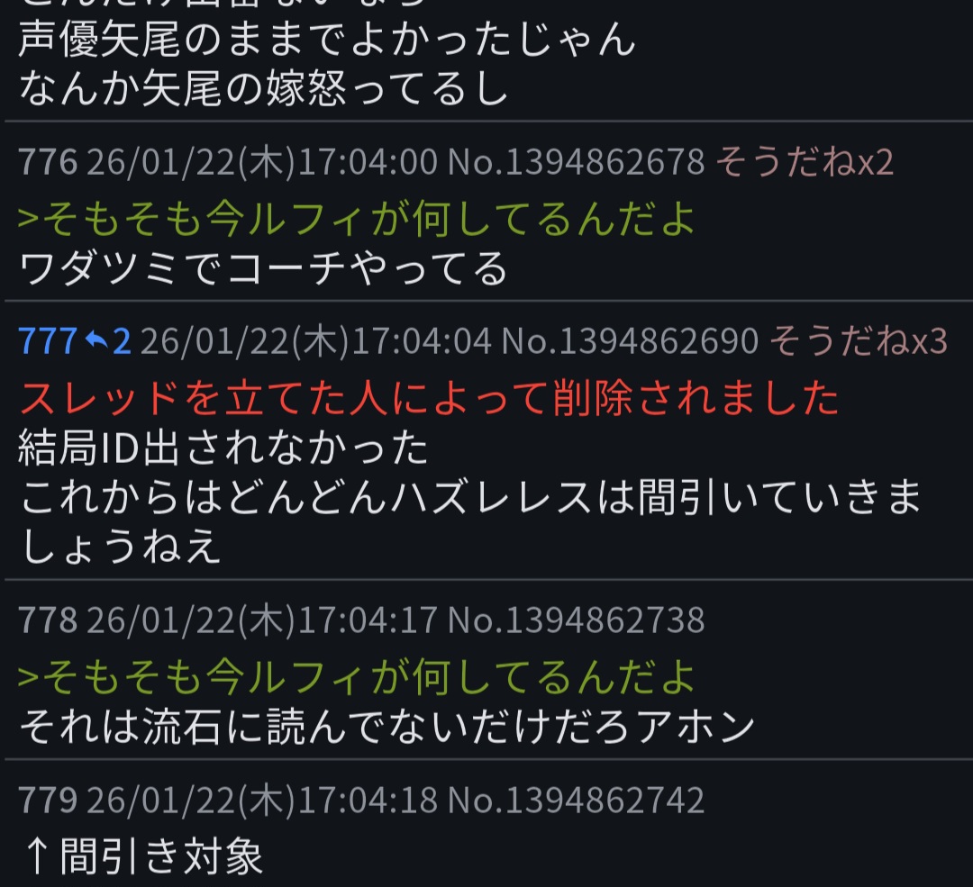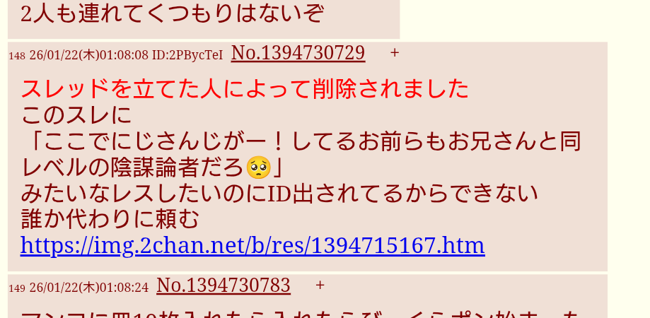 | deleted | deleted | 142 | 26/01/24(土)14:15 | |