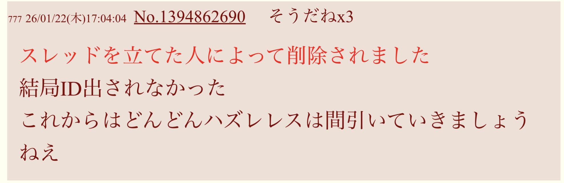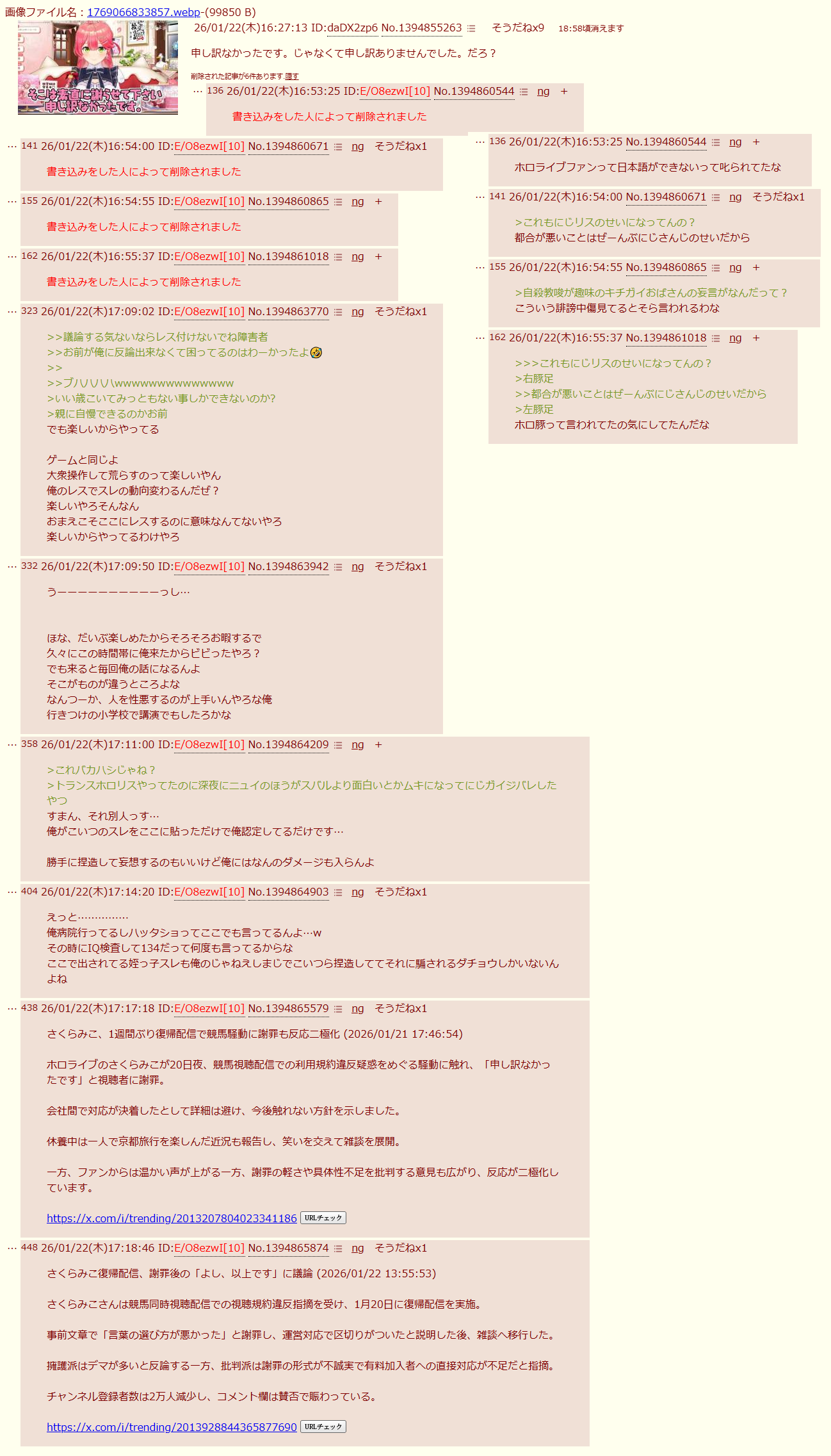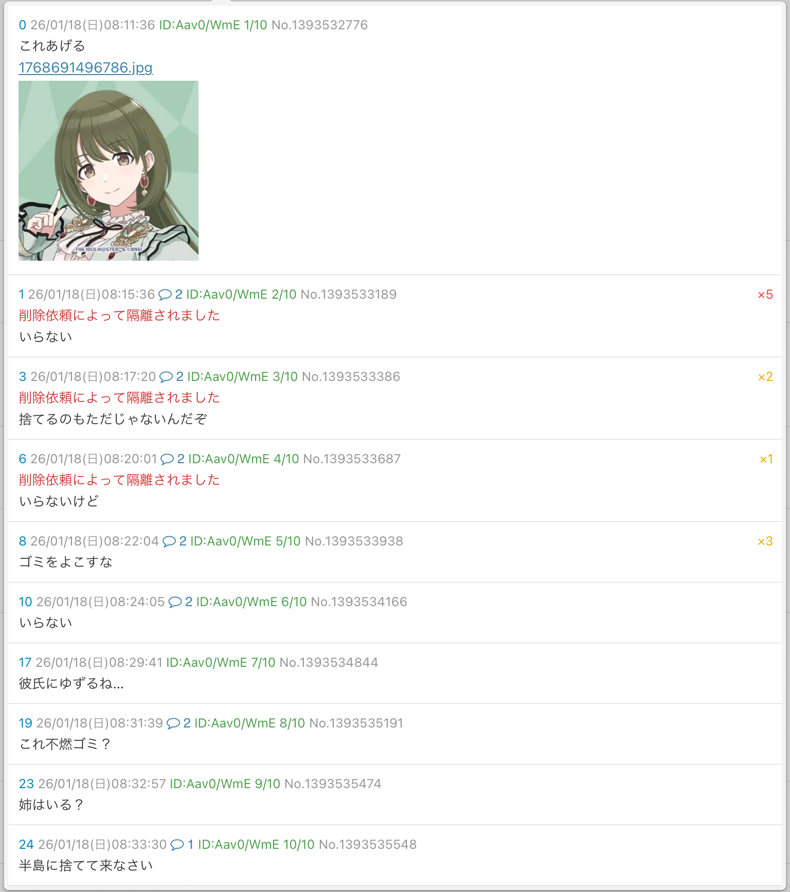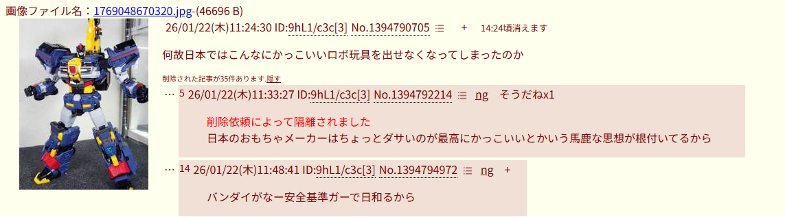 | deleted | deleted | 142 | 26/01/24(土)14:15 | |