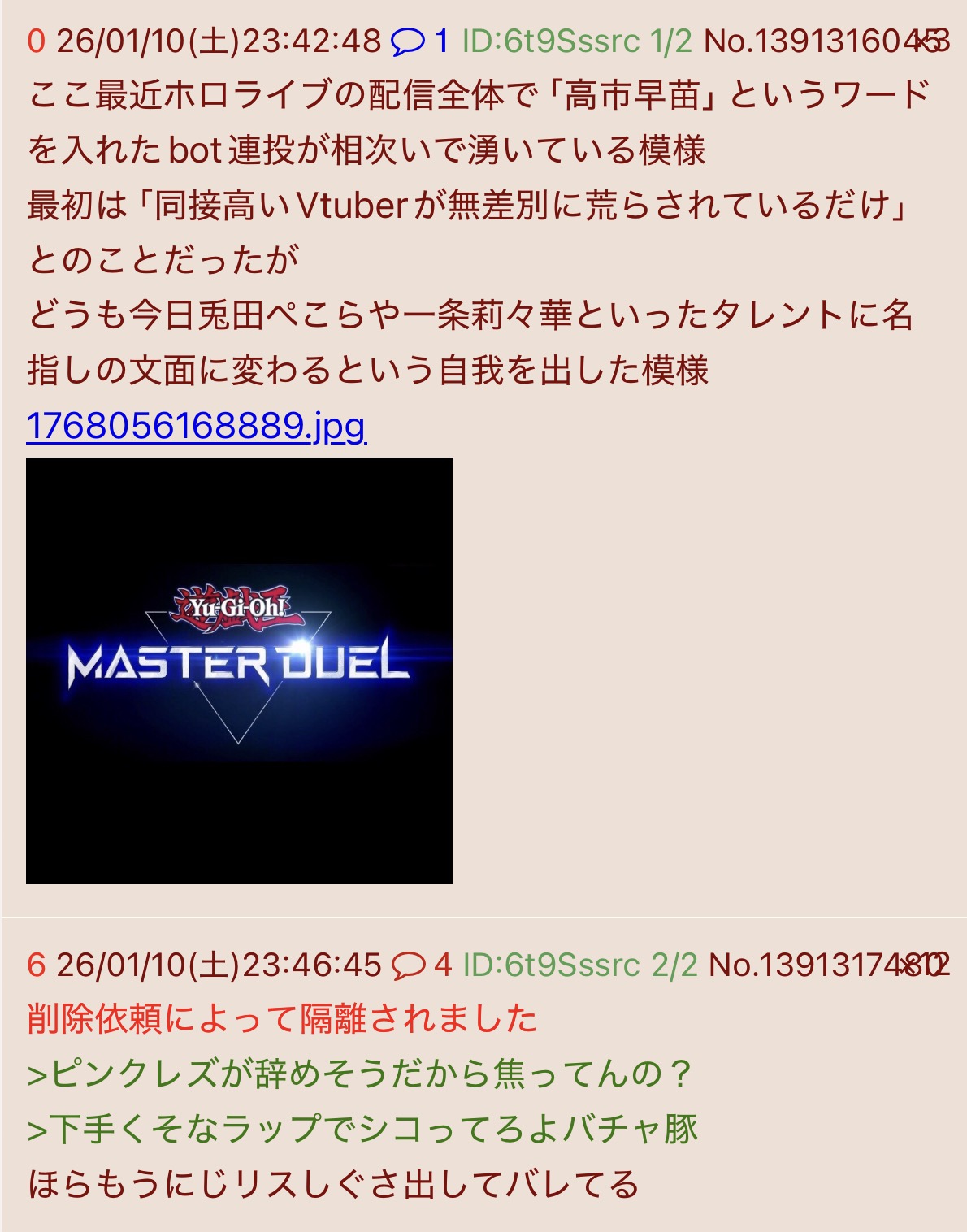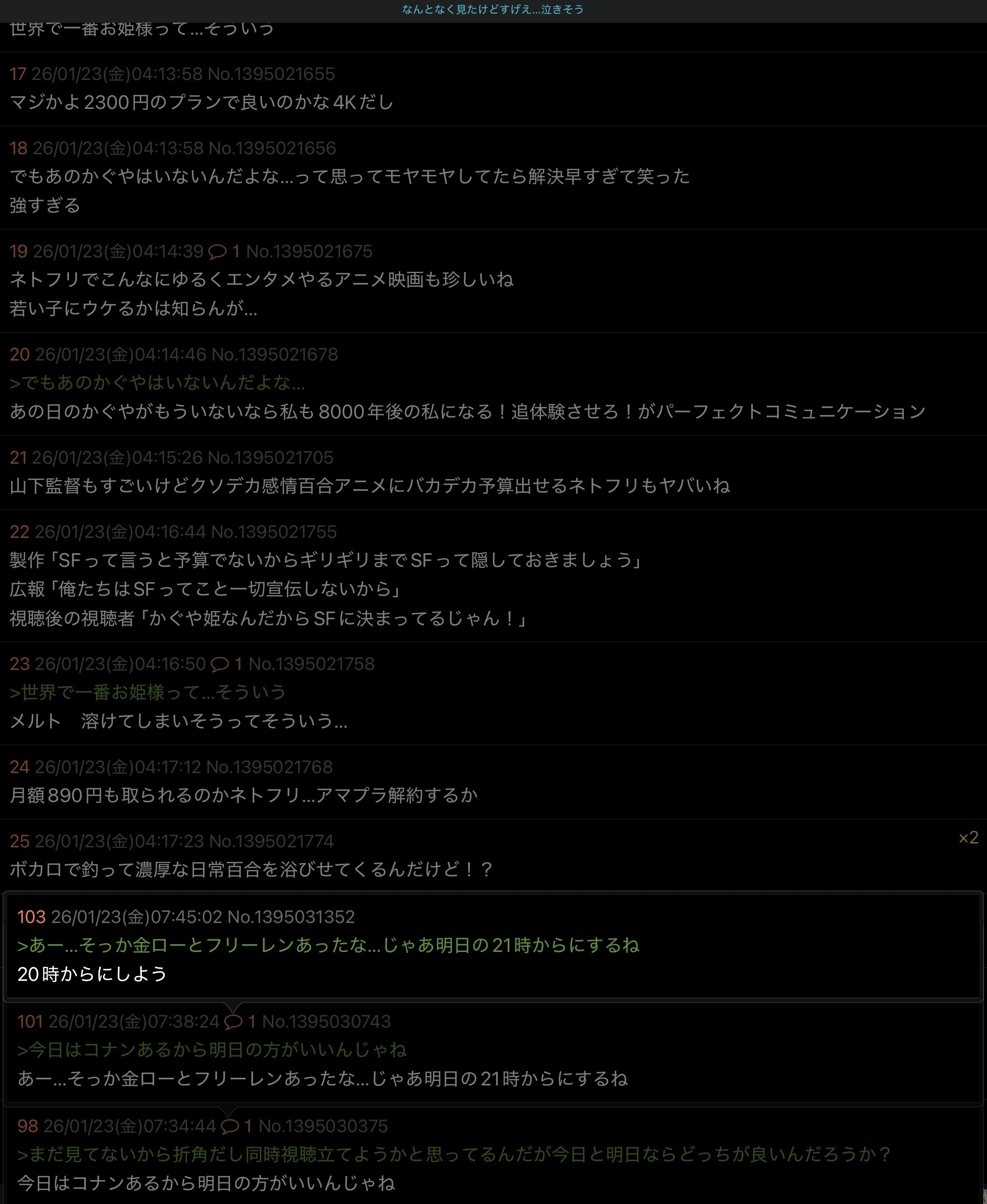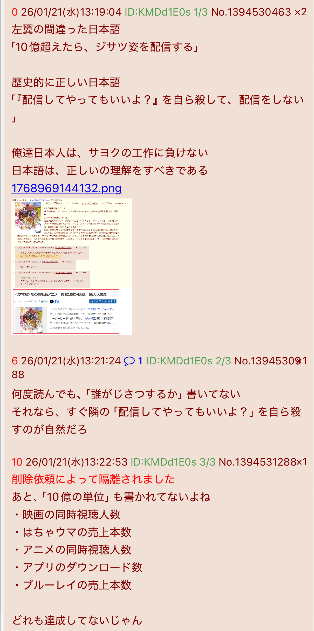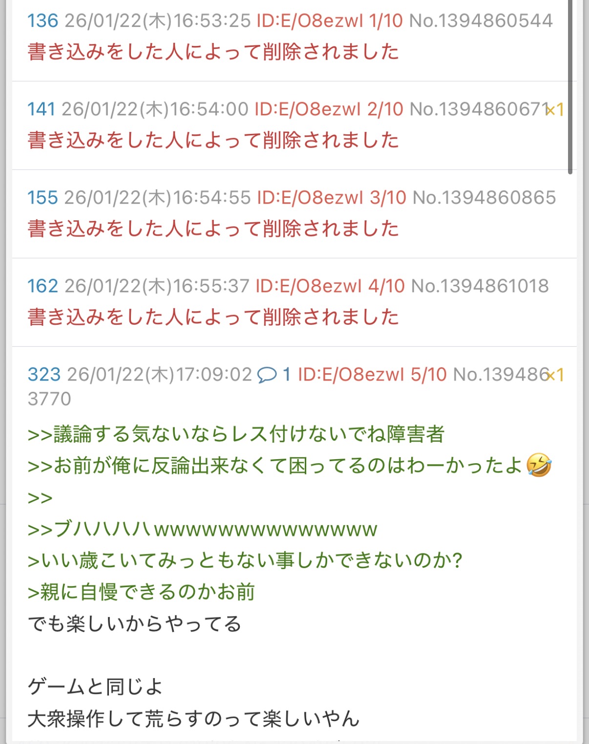 | deleted | deleted | 142 | 26/01/24(土)14:15 | |