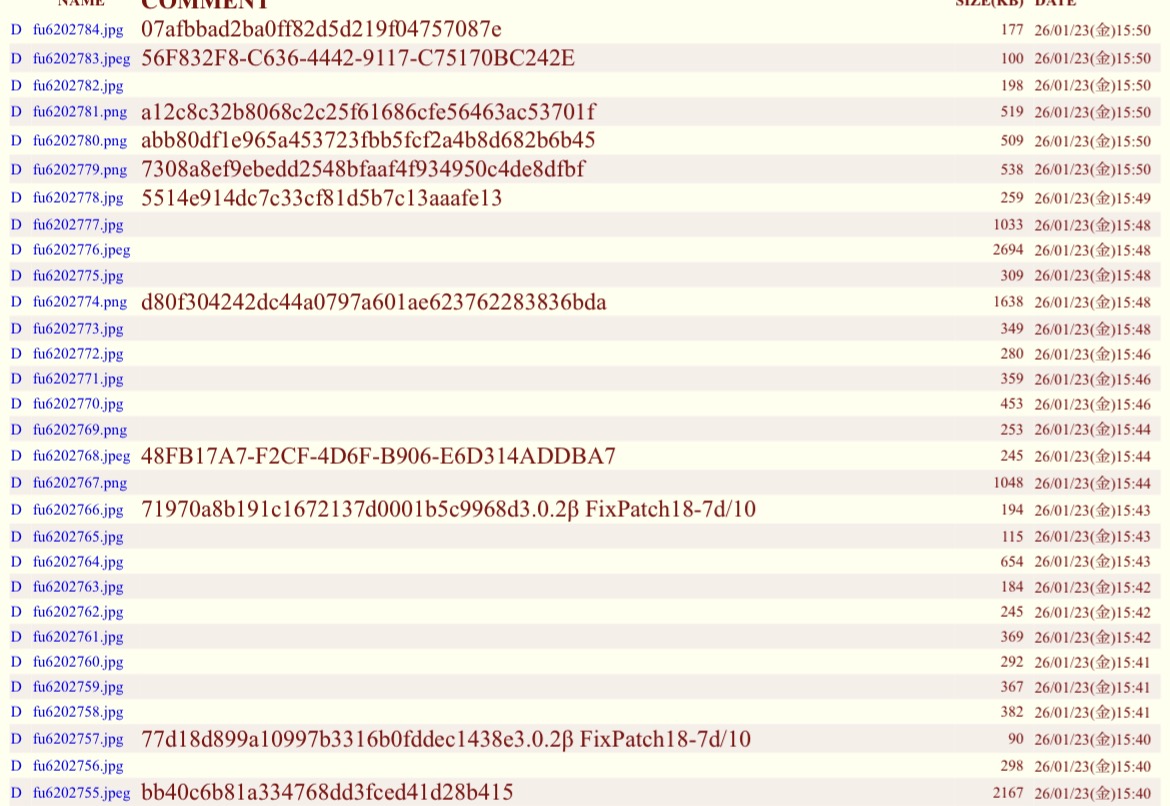 | D | fu6206616.jpeg | 20F2D91A-DCDE-43CC-9C98-D0770DE2C87D | 154 | 26/01/24(土)14:12 |