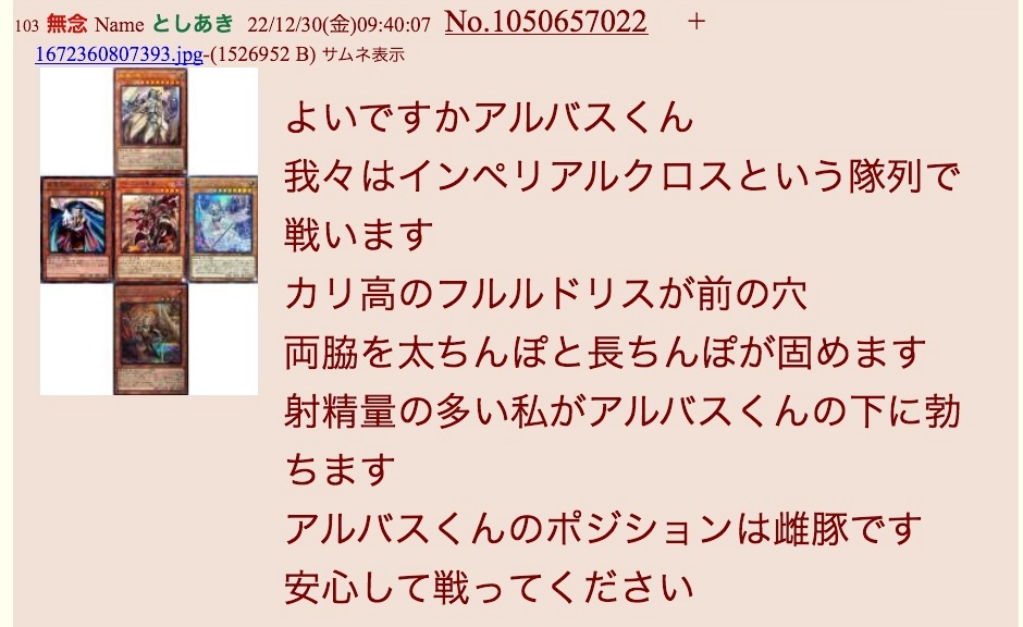 | D | fu6196743.jpeg | a5c8c552aa025459e1ac737a48267e08 | 95 | 26/01/22(木)00:03 |