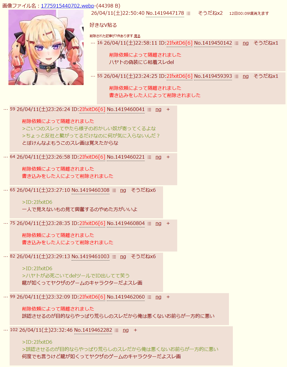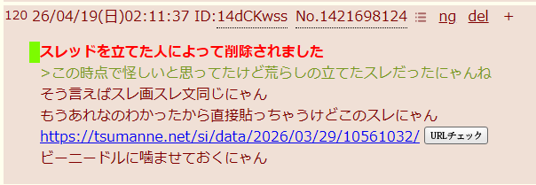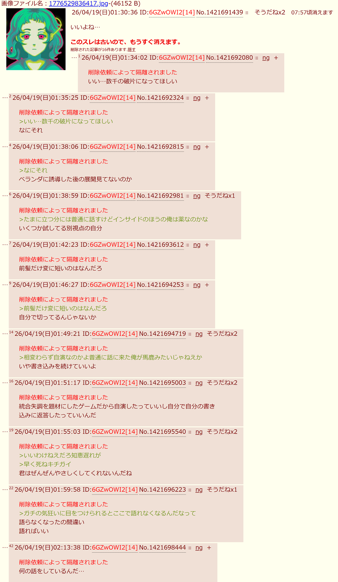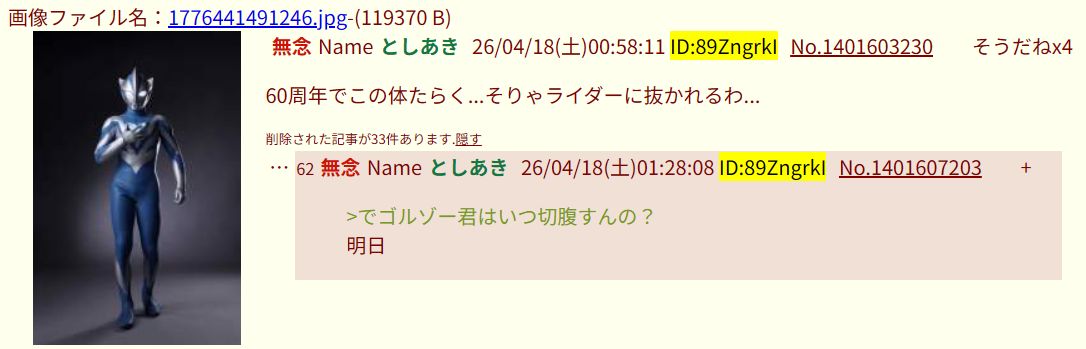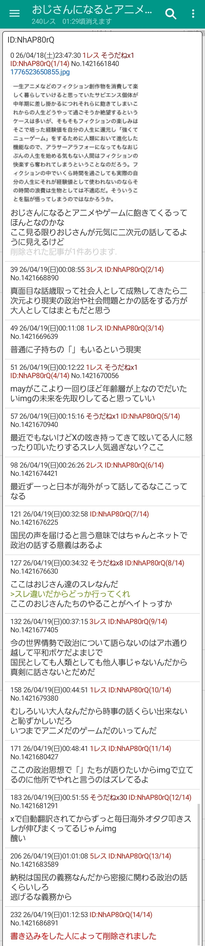 | deleted | deleted | 1717 | 26/04/20(月)09:36 | |