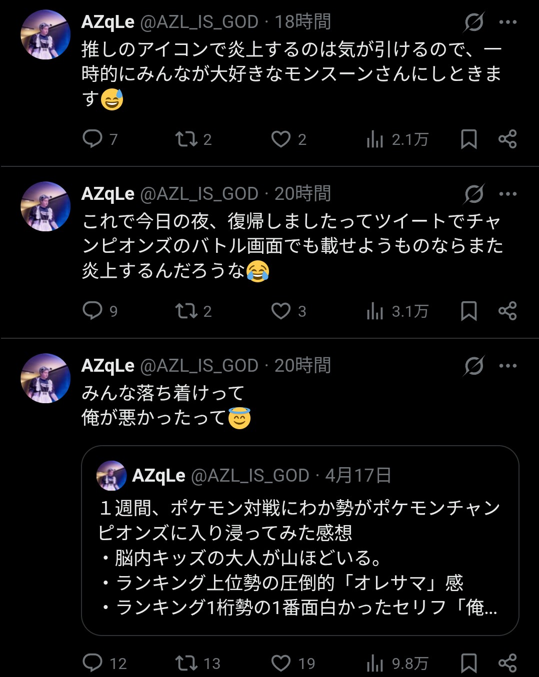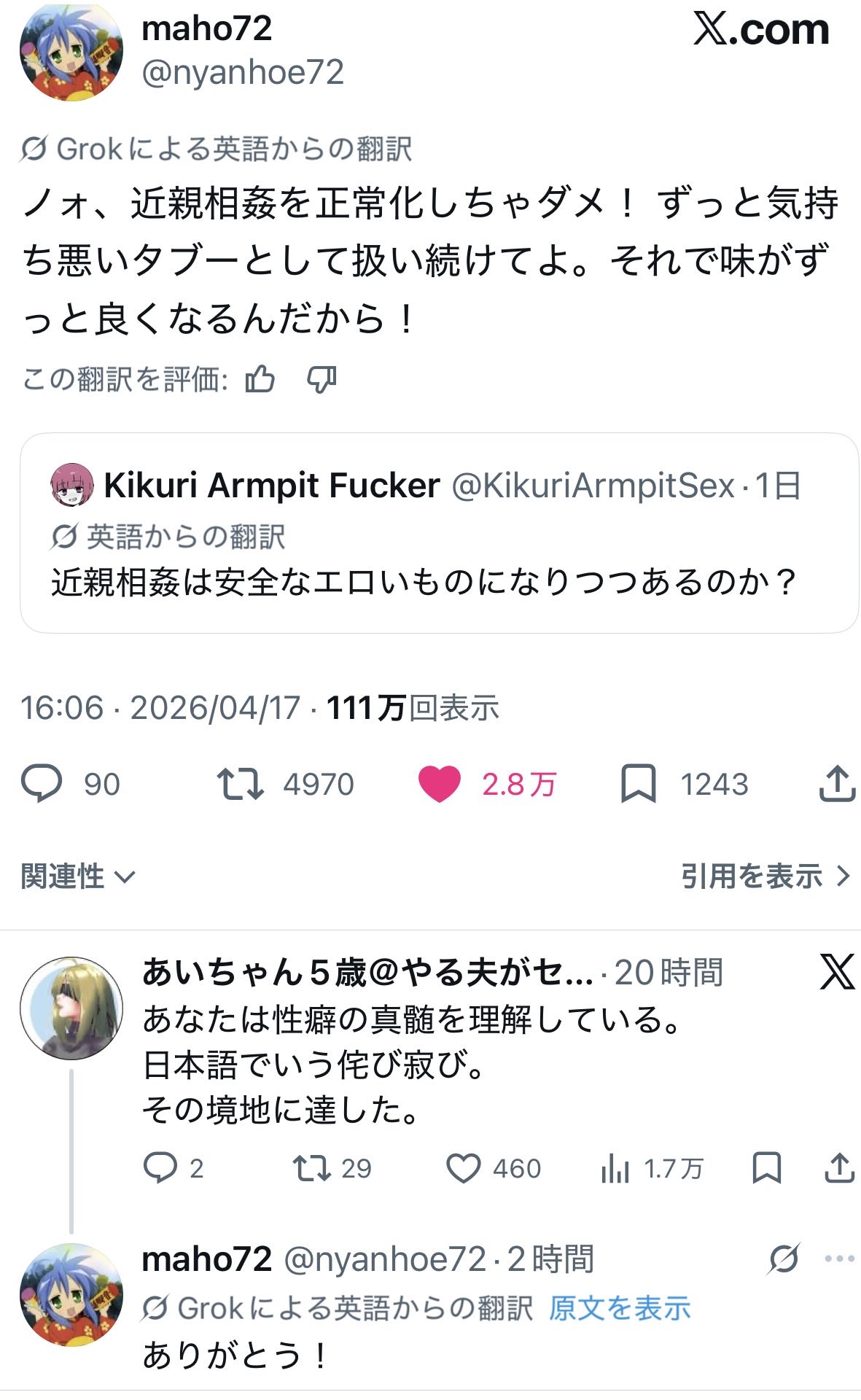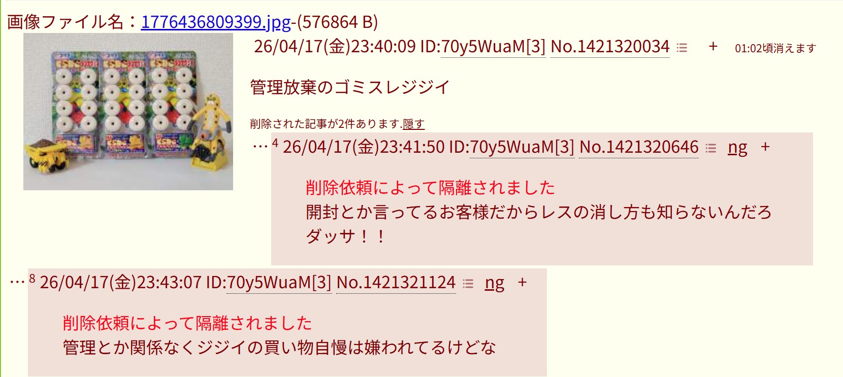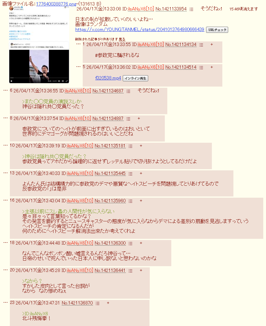 | deleted | deleted | 1717 | 26/04/20(月)09:36 | |