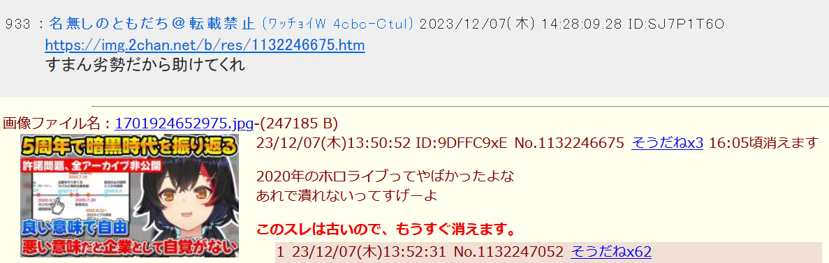 | D | fu6573184.jpg | b85f2eb678a96e6f82ca48e09b2d89ea | 53 | 26/04/20(月)09:07 |