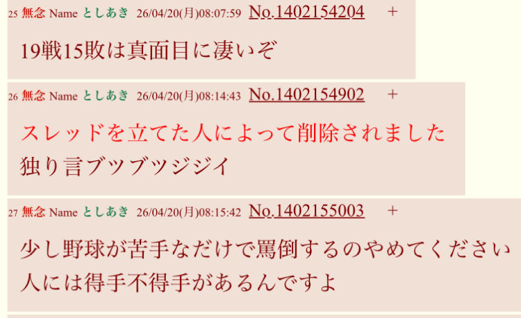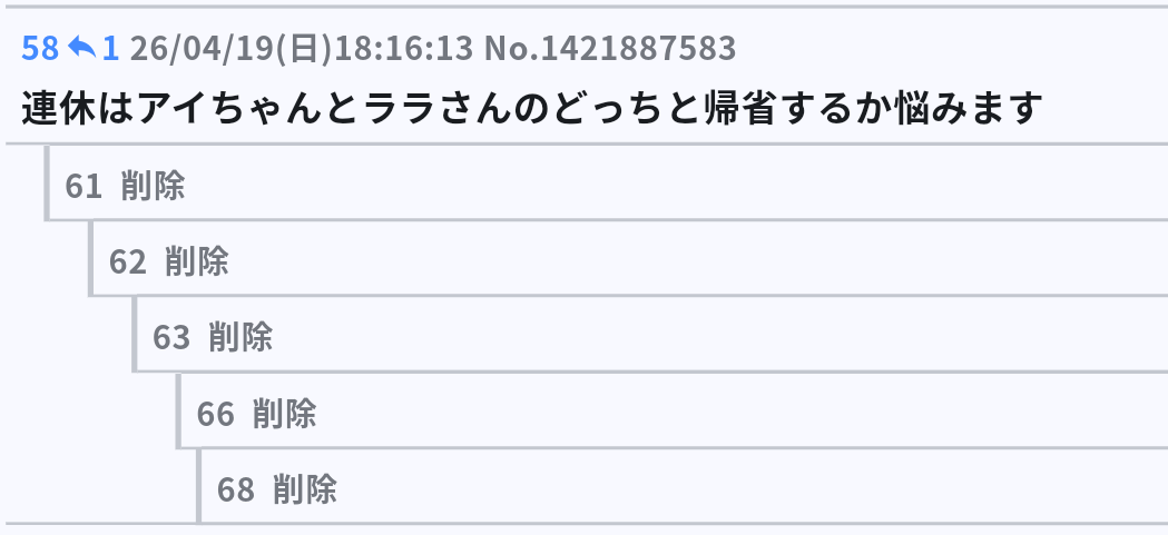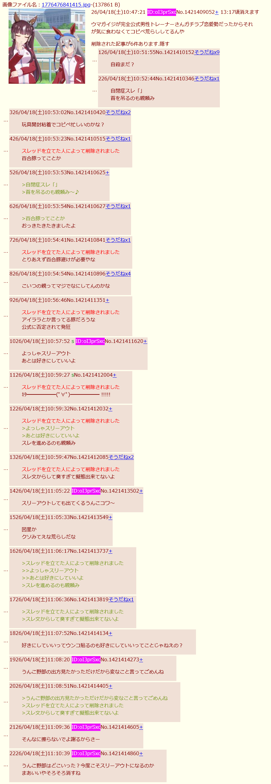 | deleted | deleted | 24 | 26/04/18(土)10:02 | |