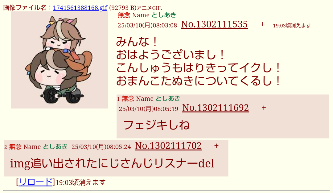 | D | fu6573168.jpeg | 193 | 26/04/20(月)08:53 | |