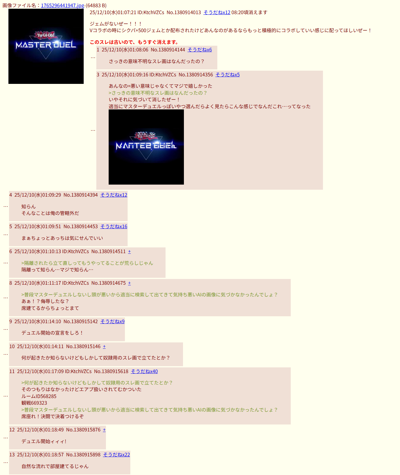 | D | fu6573165.png | E6690B68-C1F0-4E4E-B9D6-9AEA1B2AF1D8 | 1197 | 26/04/20(月)08:52 |