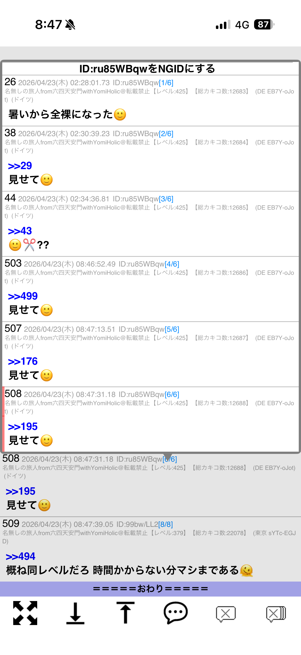 | D | fu6588159.jpeg | 8299DB29-8FCA-43E6-AC52-2B7A7CF3464F | 186 | 26/04/23(木)16:28 |