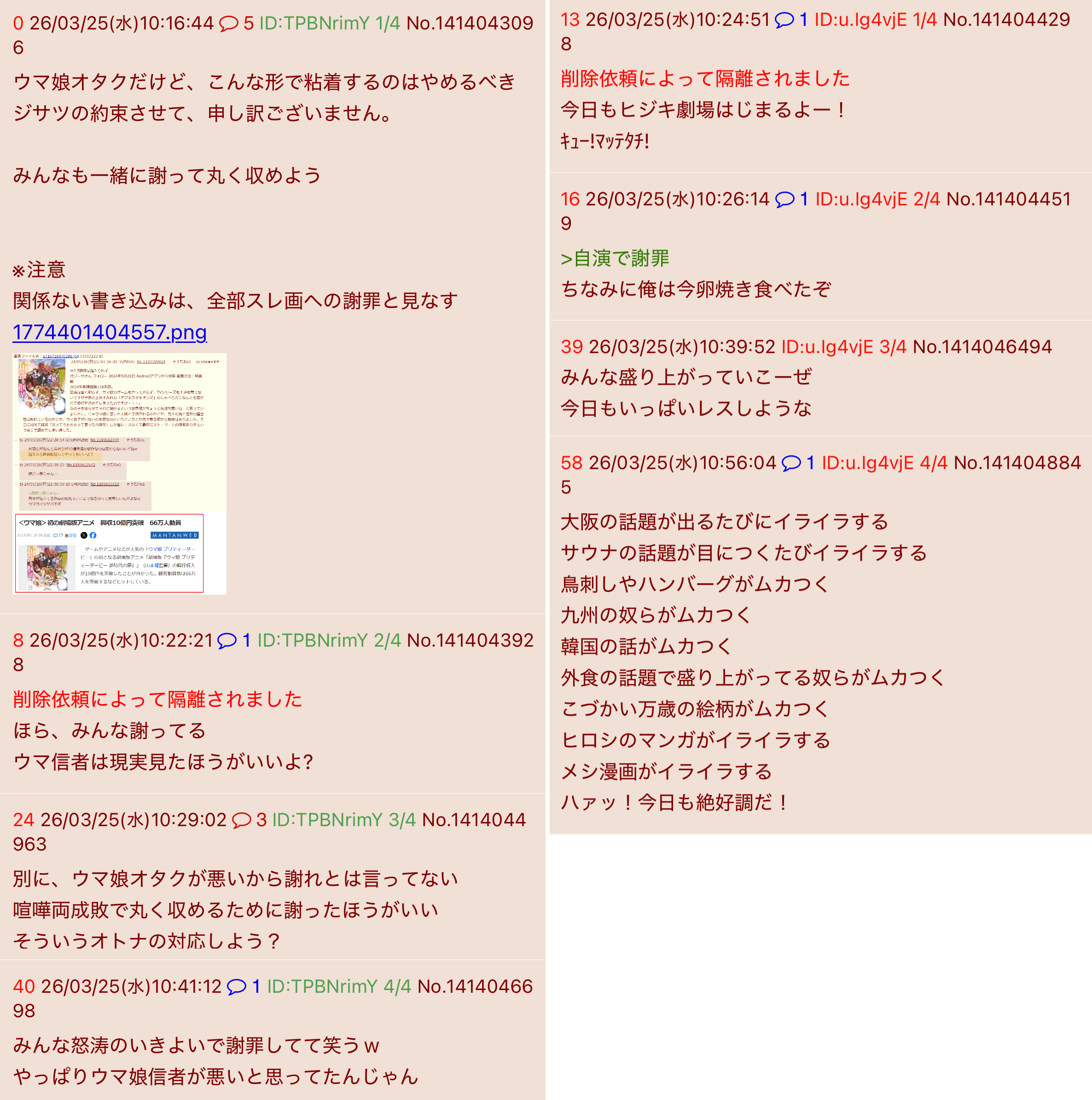 | D | fu6578226.jpeg | D0FF7100-E8D7-426F-9DDE-4421699E0BC4 | 40 | 26/04/21(火)17:55 |